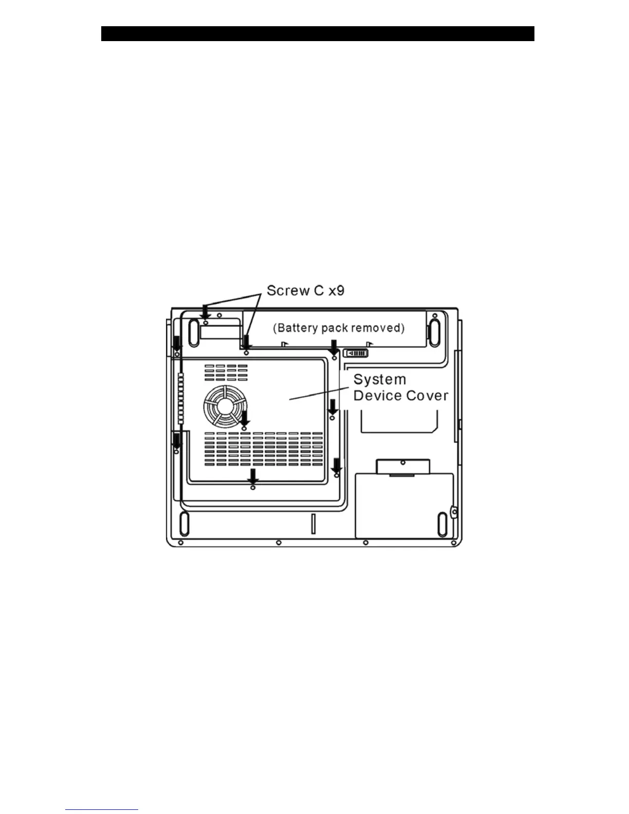 3. Locate and remove the 9 Screw C’s on the system device cover.