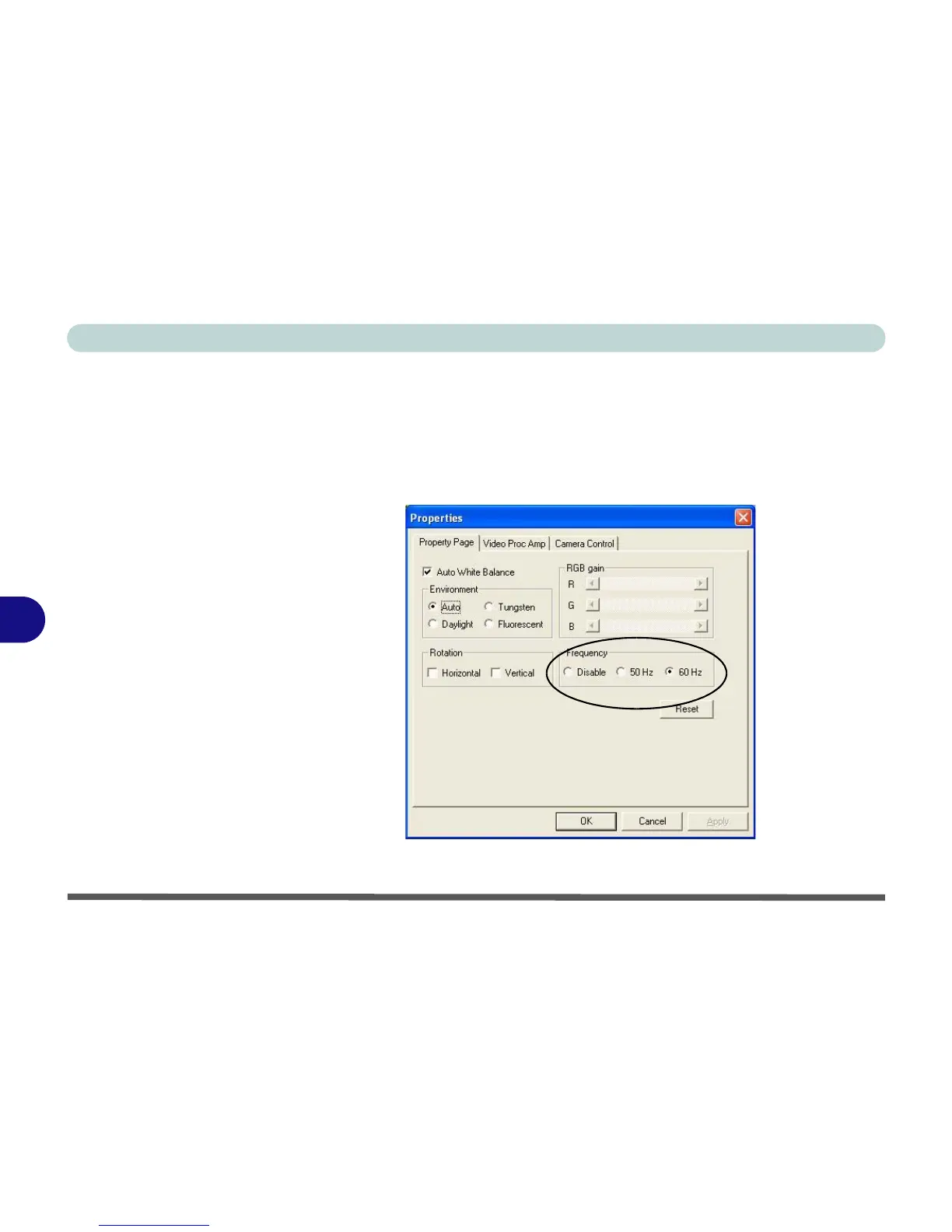 3. Click either 50Hz or 60Hz under Frequency in Property Page (tab).