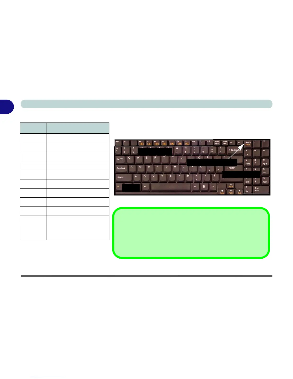 Table 1 - 4 - Function Keys