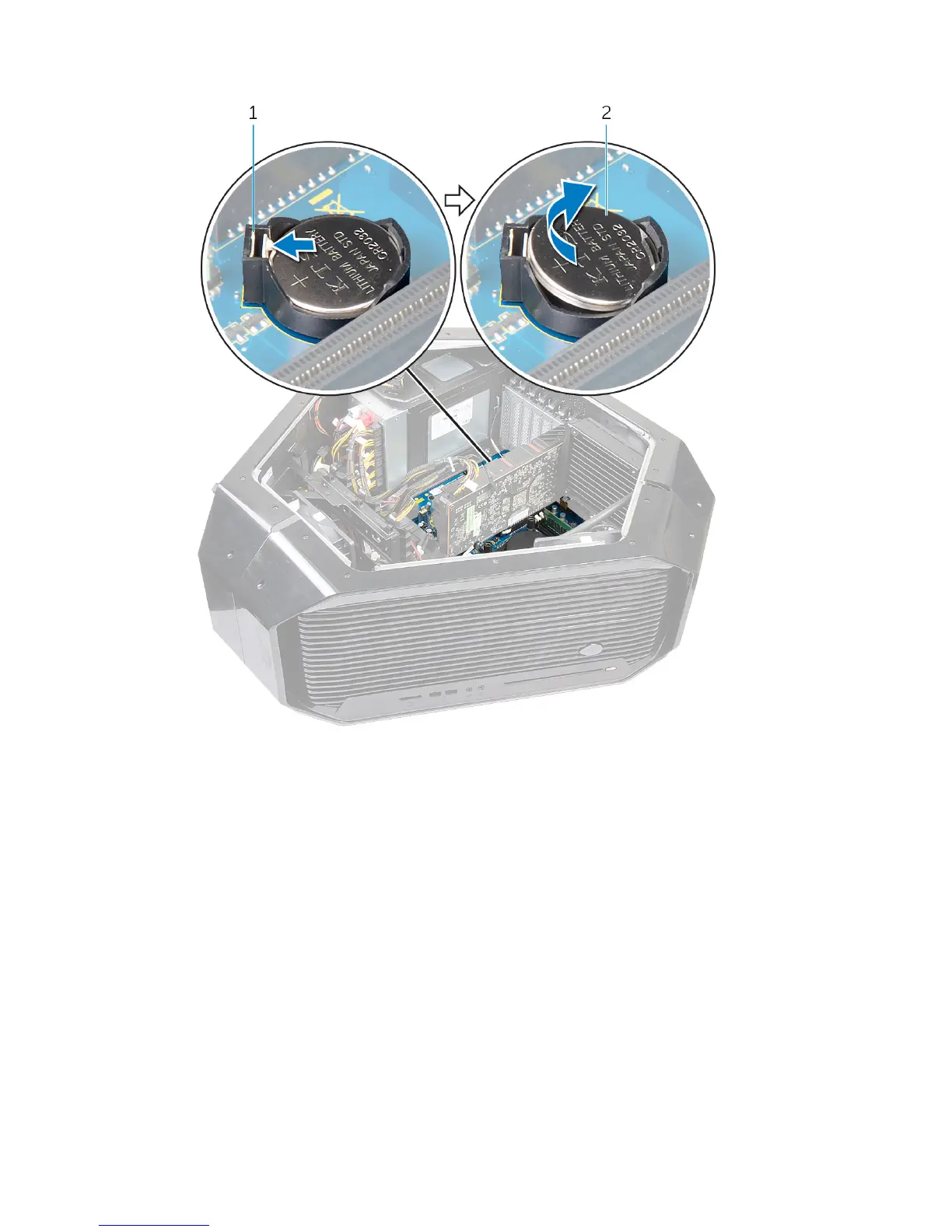 1 battery-release lever 2 coin-cell battery