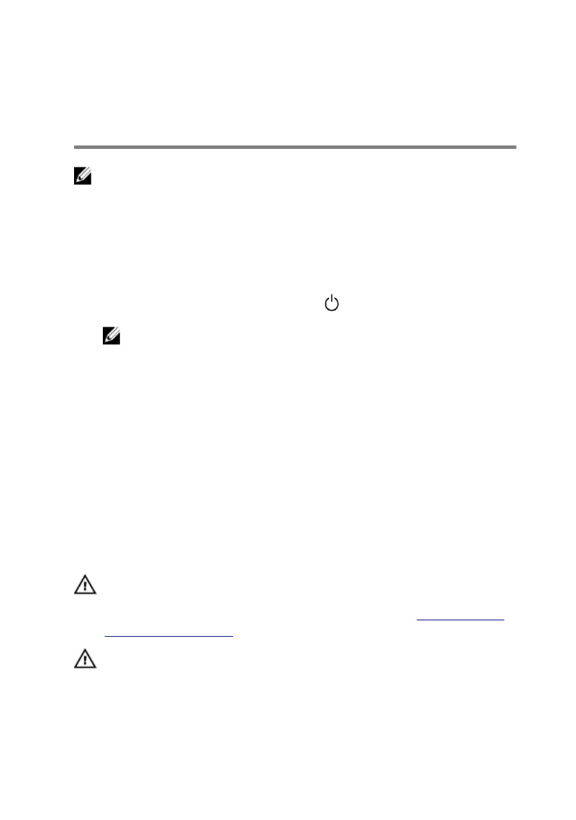6 After the computer is unplugged, press and hold the power button for 5