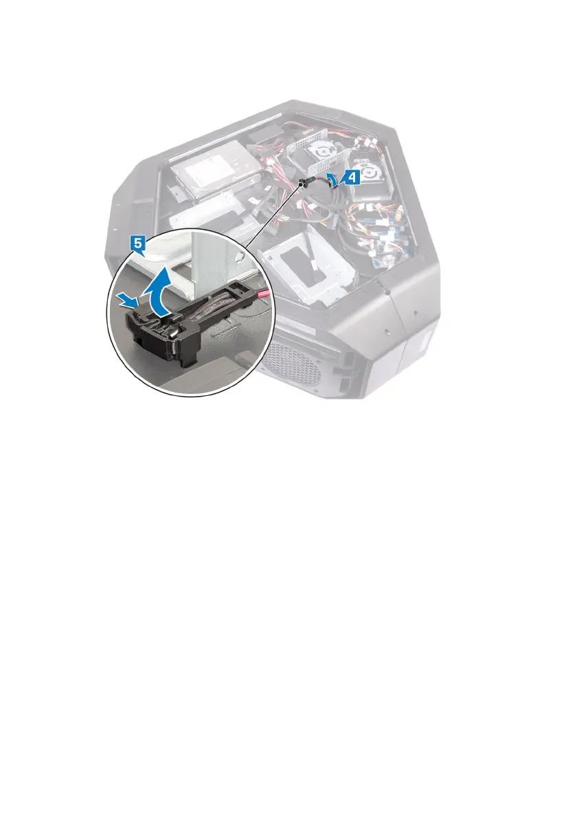 5 Push the release tab and pry the drive-bay heat-sensor cable o the chassis.