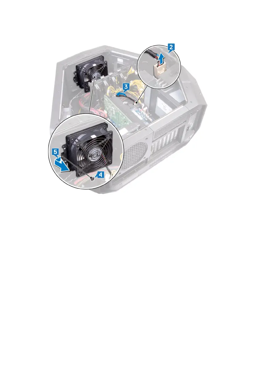 5 Slide and remove the PCI fan from the tabs securing it to the chassis.