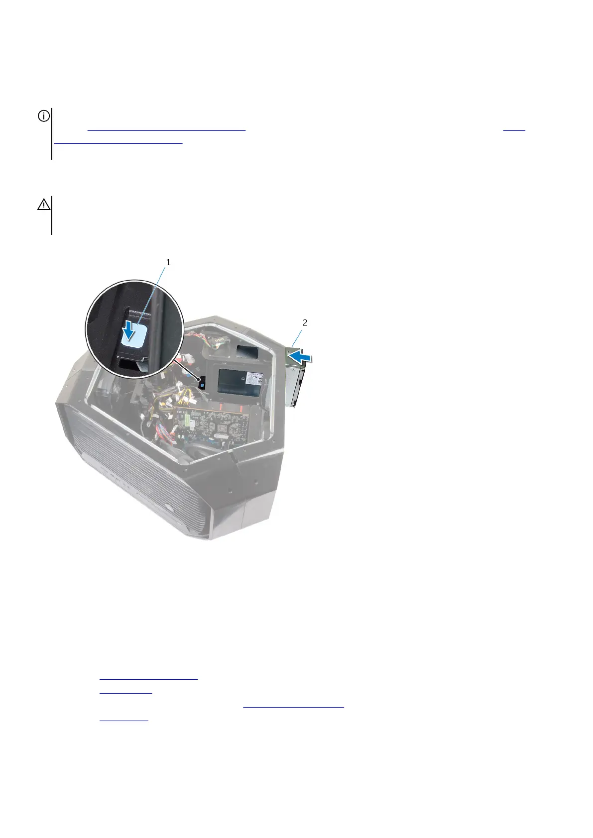 1. Press and hold the securing tab on the chassis and slide the power-supply unit into the chassis until it snaps into position.