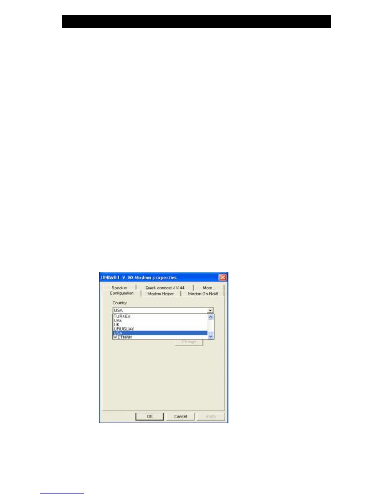 Modem Settings icon. You will see a similar dialog box.