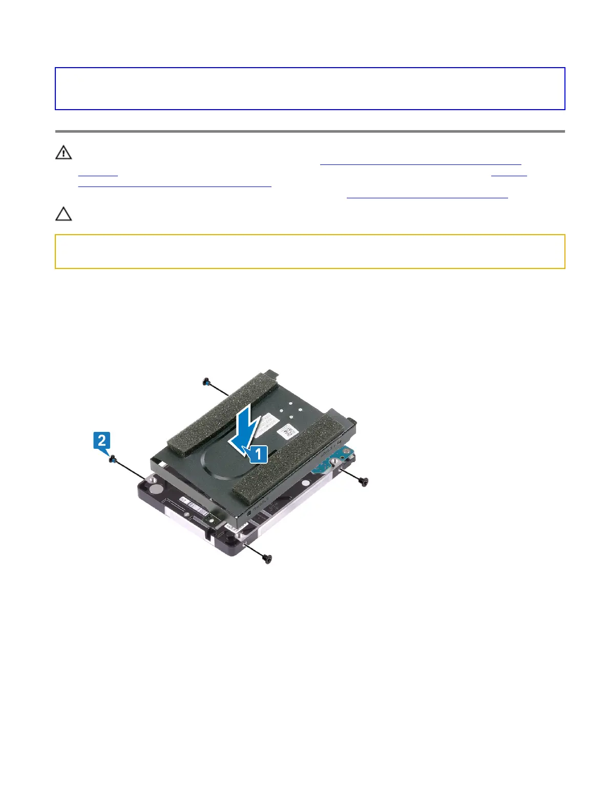 1 Place the hard drive on the hard-drive bracket and align the screw holes on the hard-drive bracket with the screw holes on