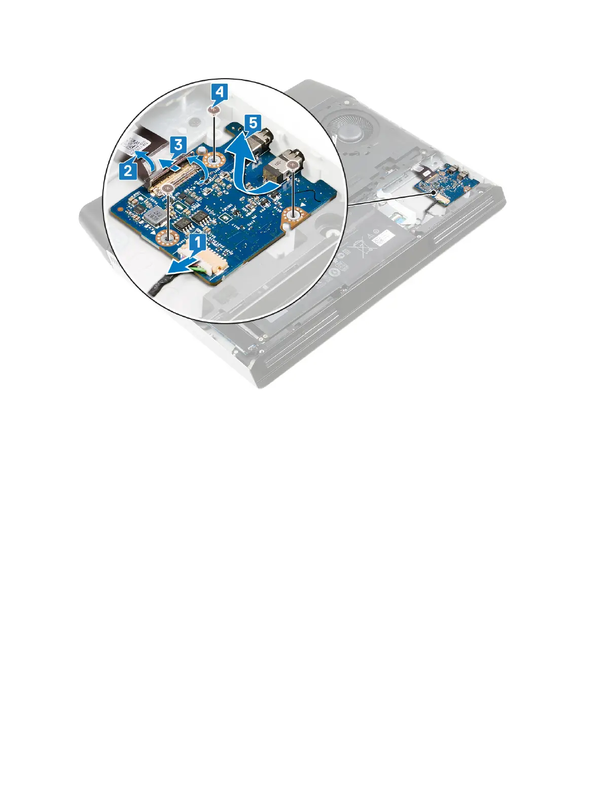 5 Lift the audio daughter-board at an angle o the palm-rest assembly.