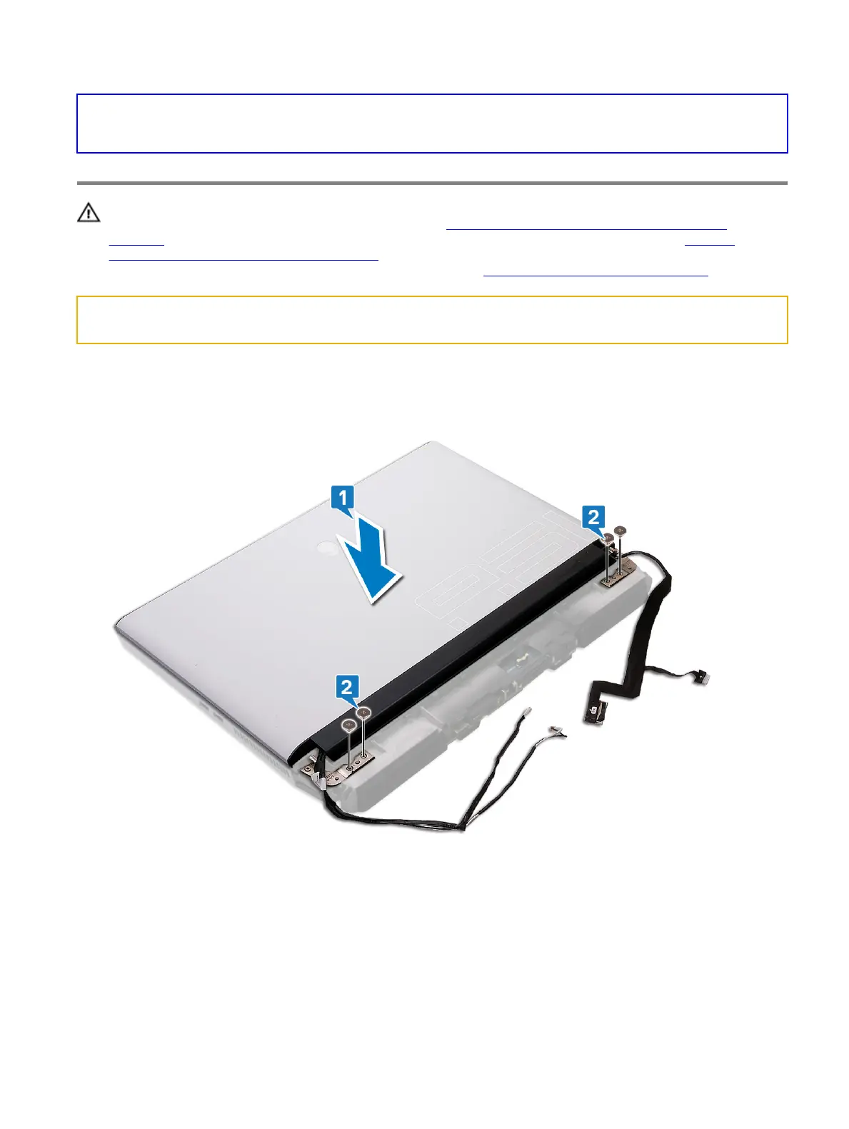 1 Align the screw holes on the display hinges with the screw holes on the palm-rest assembly.