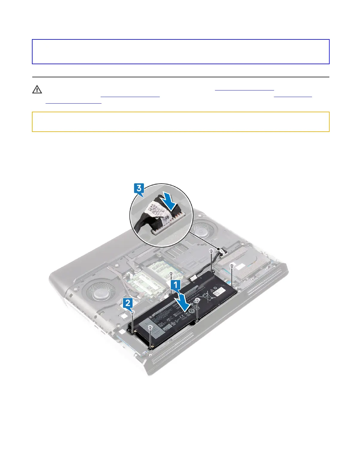 1 Align the screw holes on the battery with the screw holes on the palm-rest assembly.