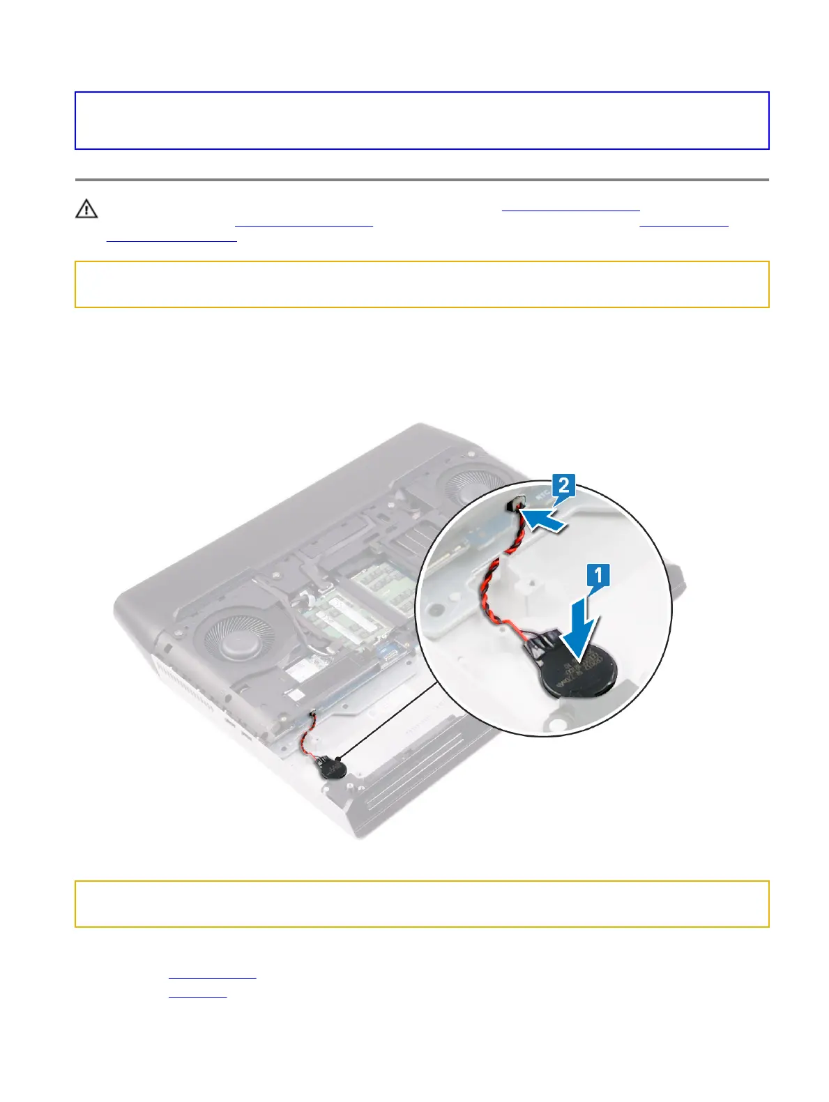 1 Adhere the coin-cell battery to the slot on the palm-rest assembly.
