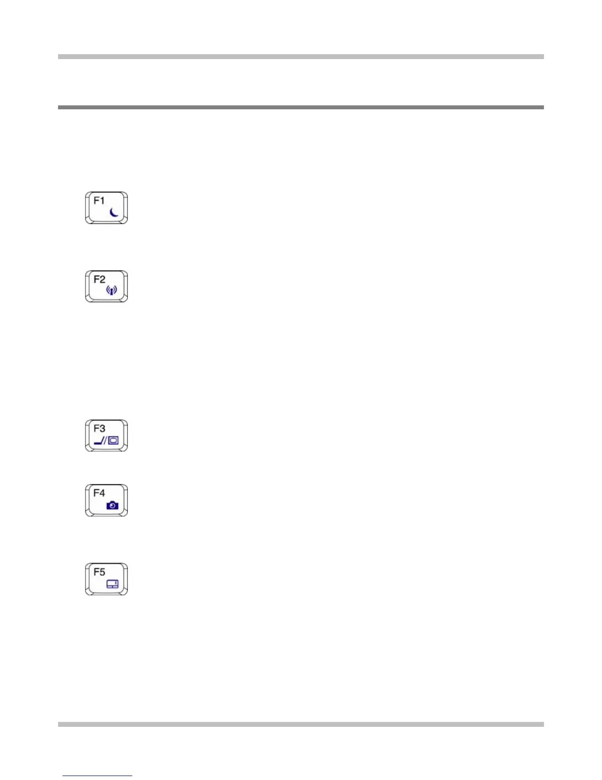 Press this key combination (Fn+F1) to enter sleep mode. In sleep mode, the