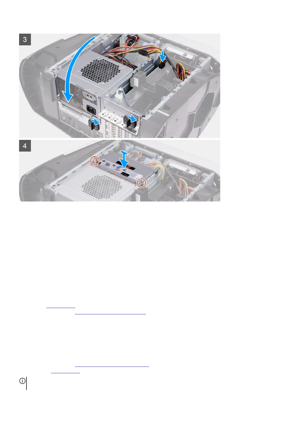 9. Align the screw holes on the power-supply unit bracket with the screw holes on the power-supply unit cage.