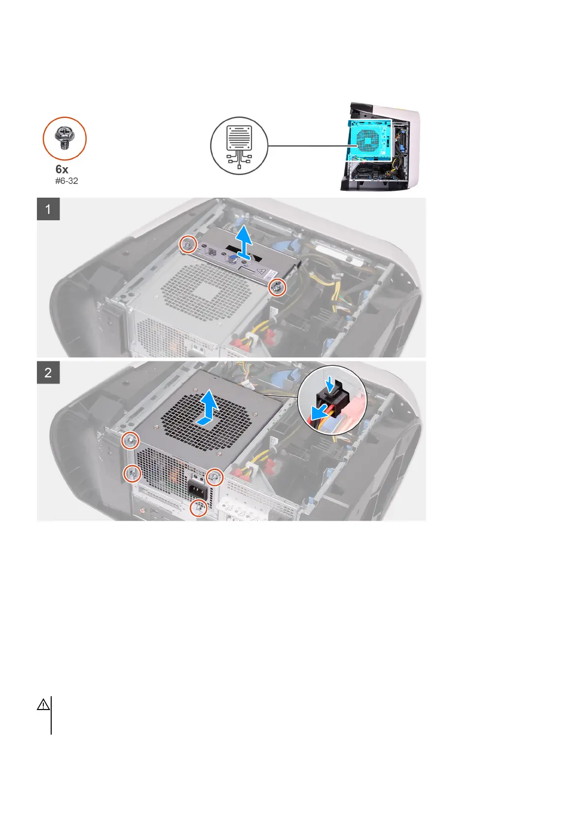 The following images indicate the location of the power-supply unit and provides a visual representation of the removal procedure.
