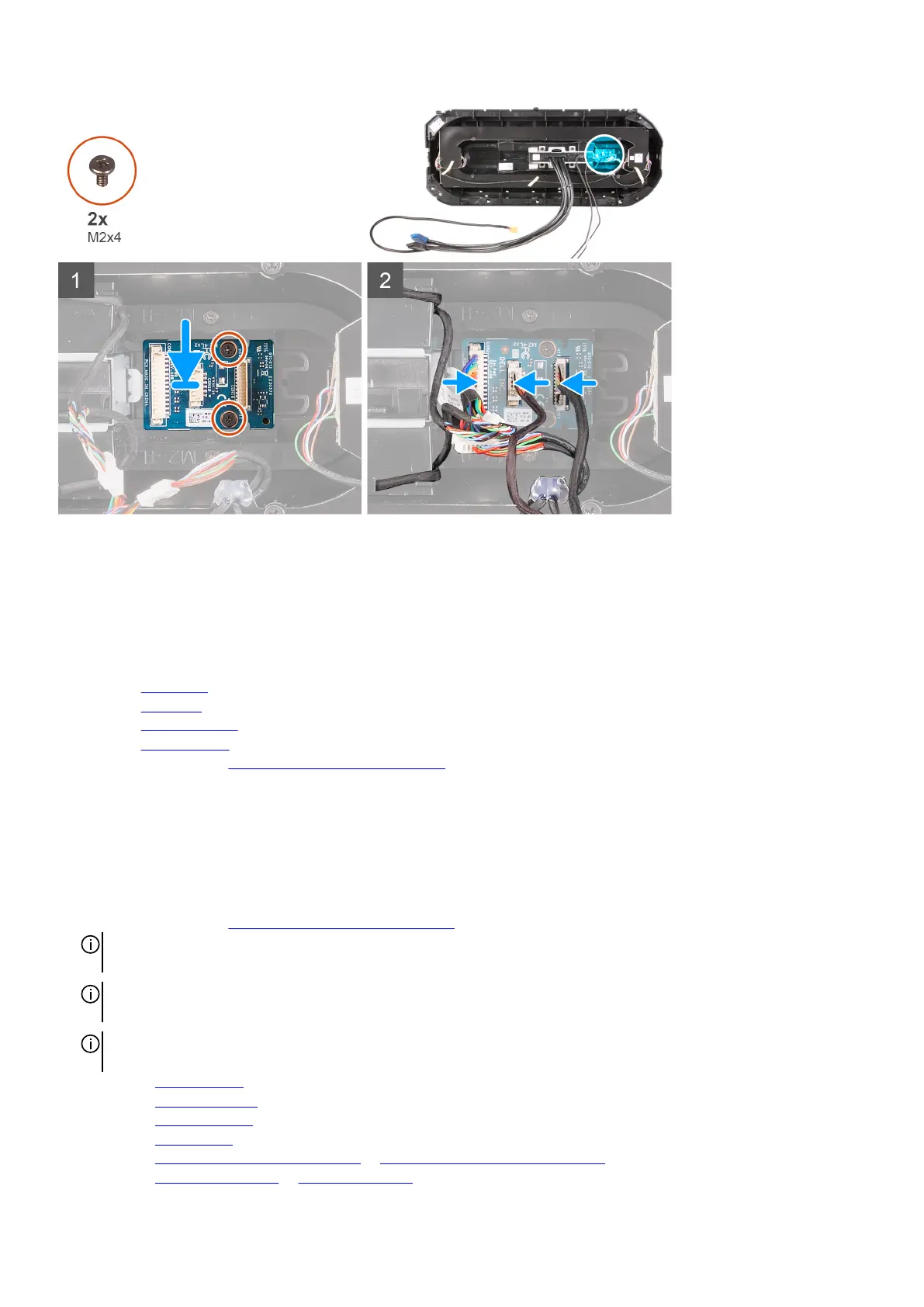 2. Replace the two screws (M2x4) that secure the power-button module to the front bezel.