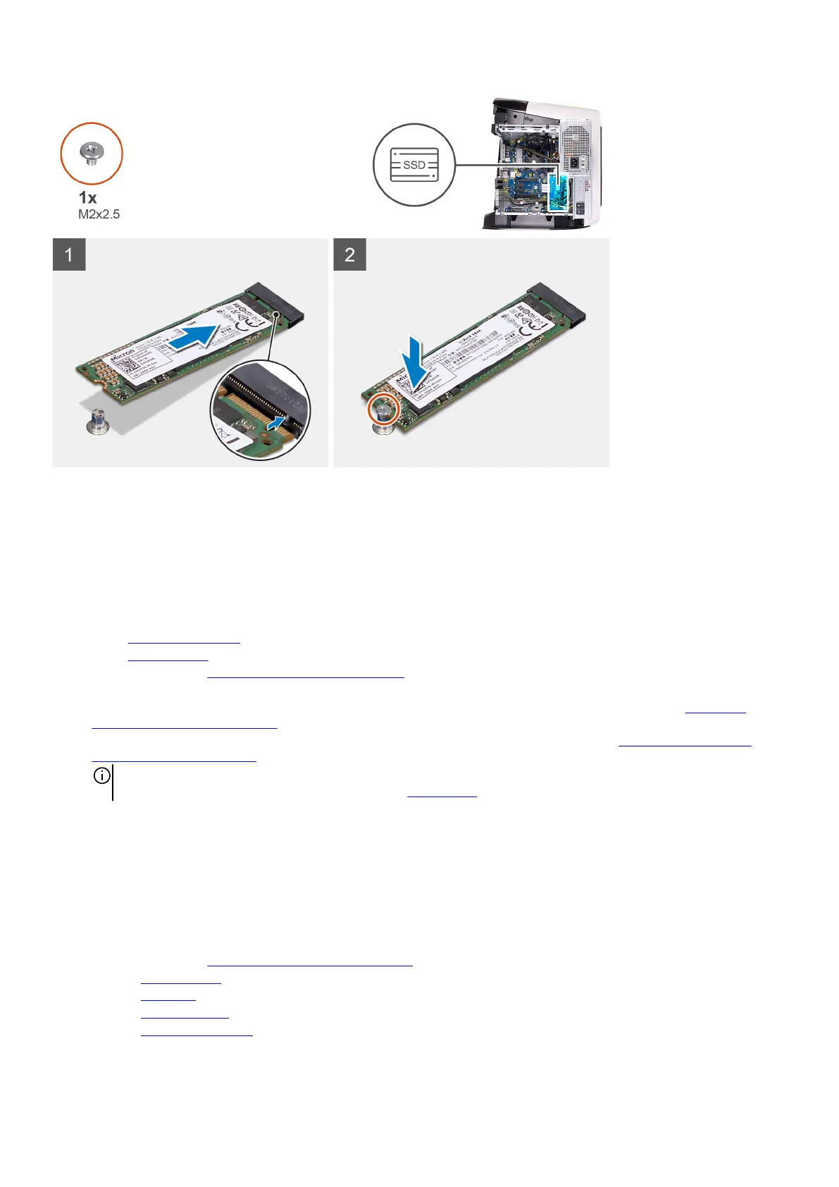 3. Press the other end of the solid-state drive down and replace the screw (M2x2.5) that secure the solid-state drive to the system