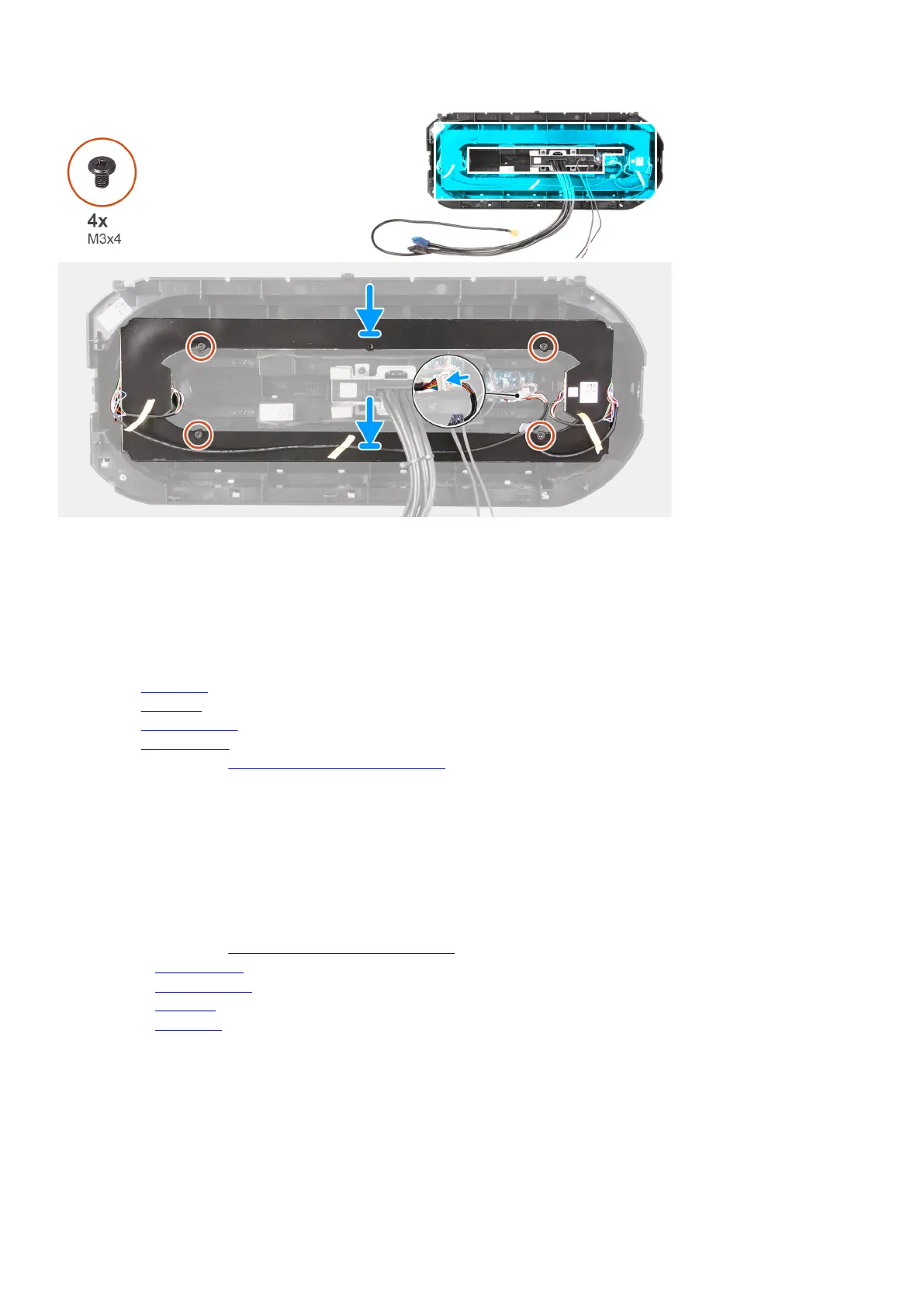 2. Replace the four screws (M3x4) that secure the AlienFX LED board to the front bezel.
