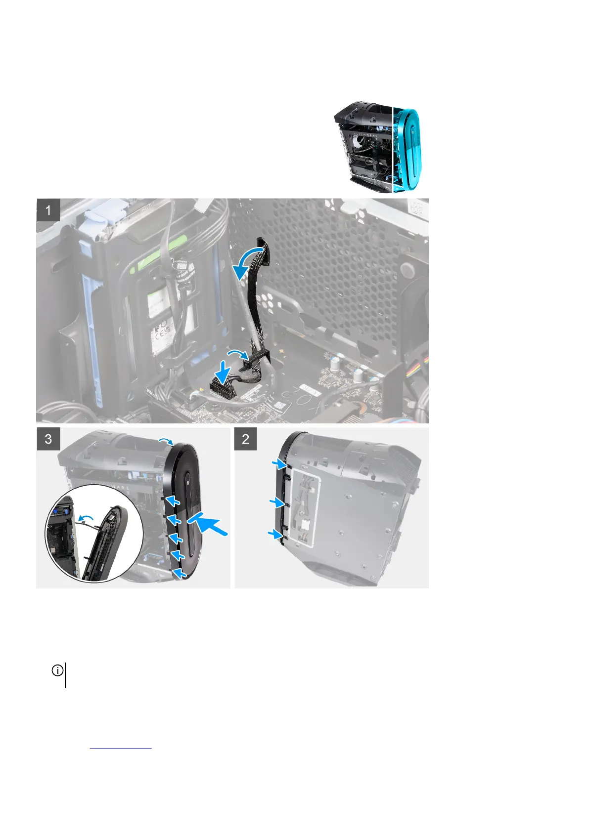 3. Push the front bezel towards the front panel and ensure the tabs clip onto the slots of the front panel.