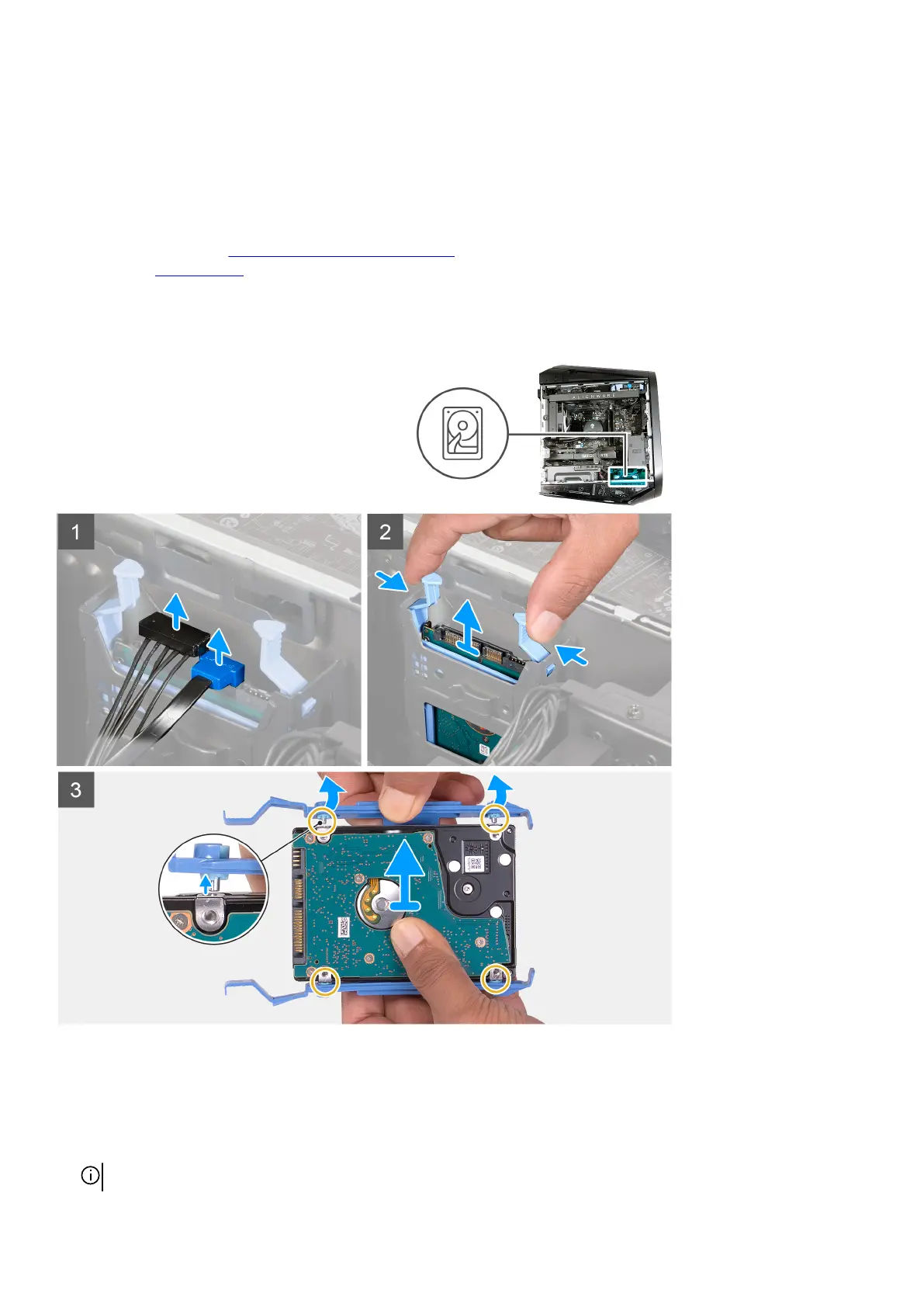 The following images indicate the location of the 2.5-inch hard drive and provide a visual representation of the removal procedure.