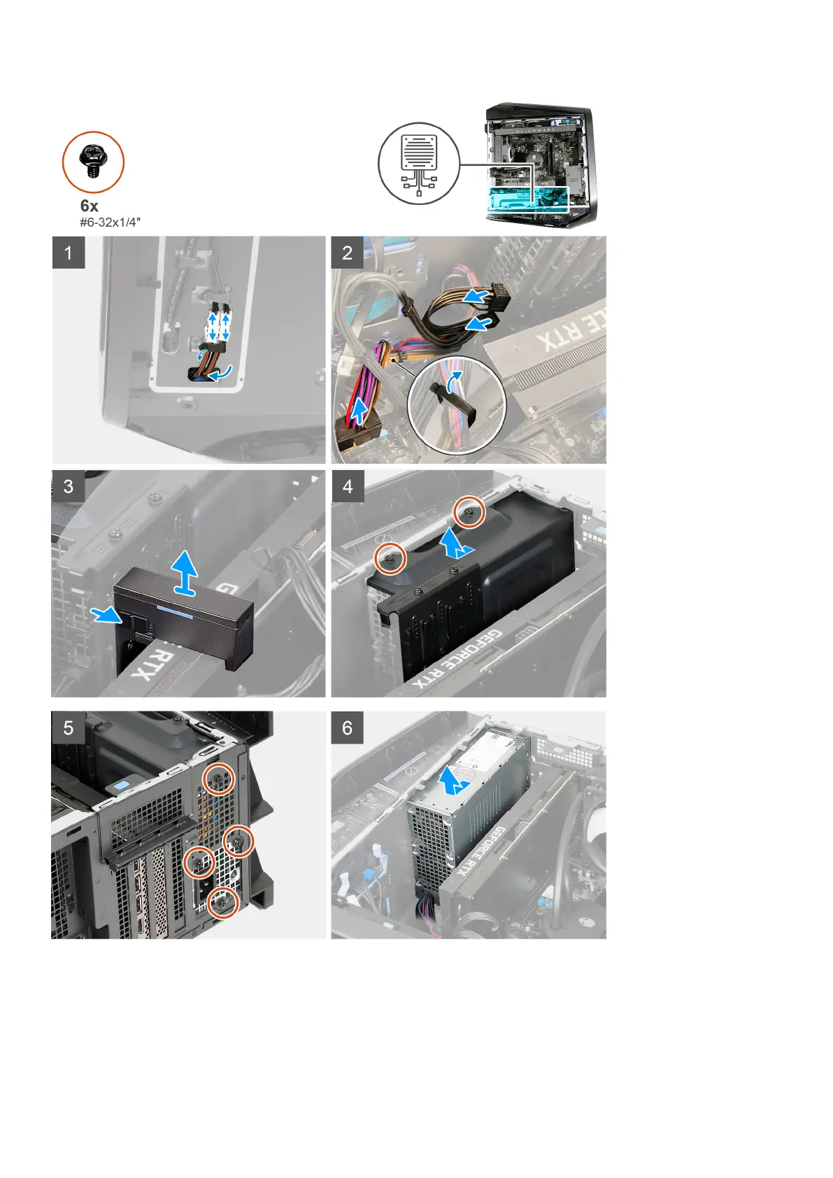 1. Disconnect the power-supply unit cables from the power-supply unit extension cables on the right side of the computer.