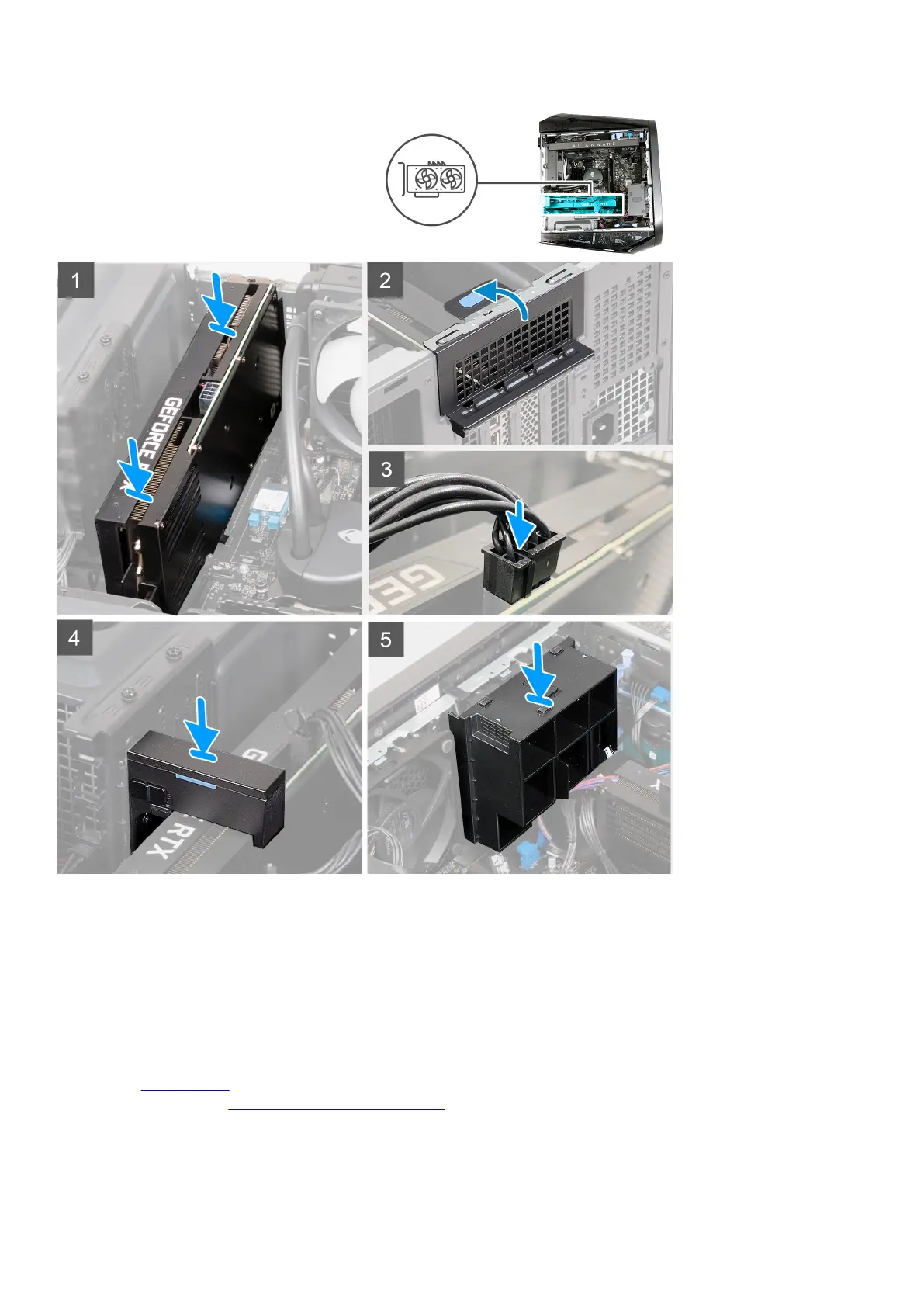 4. Replace the graphics-card end holder over the PCIe fan and slide the latch into its lock position.
