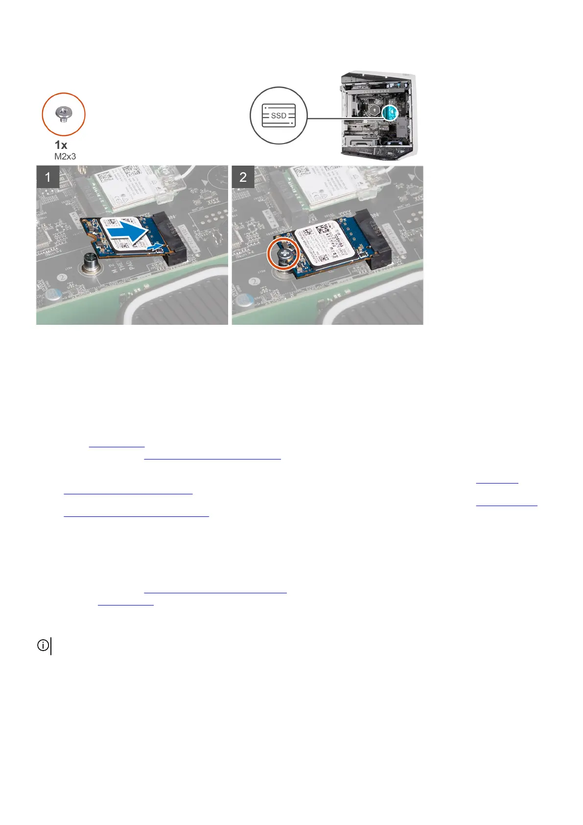 3. Press the other end of the 2230 solid-state drive down and replace the screw (M2x3) that secures the 2230 solid-state drive to