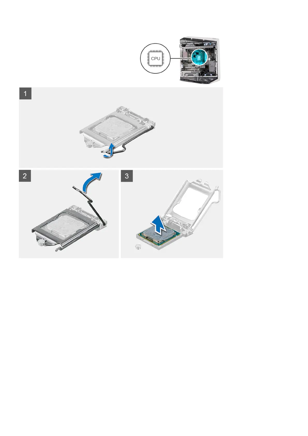 1. Press the release lever down and then push it away from the processor to release it from the tab.