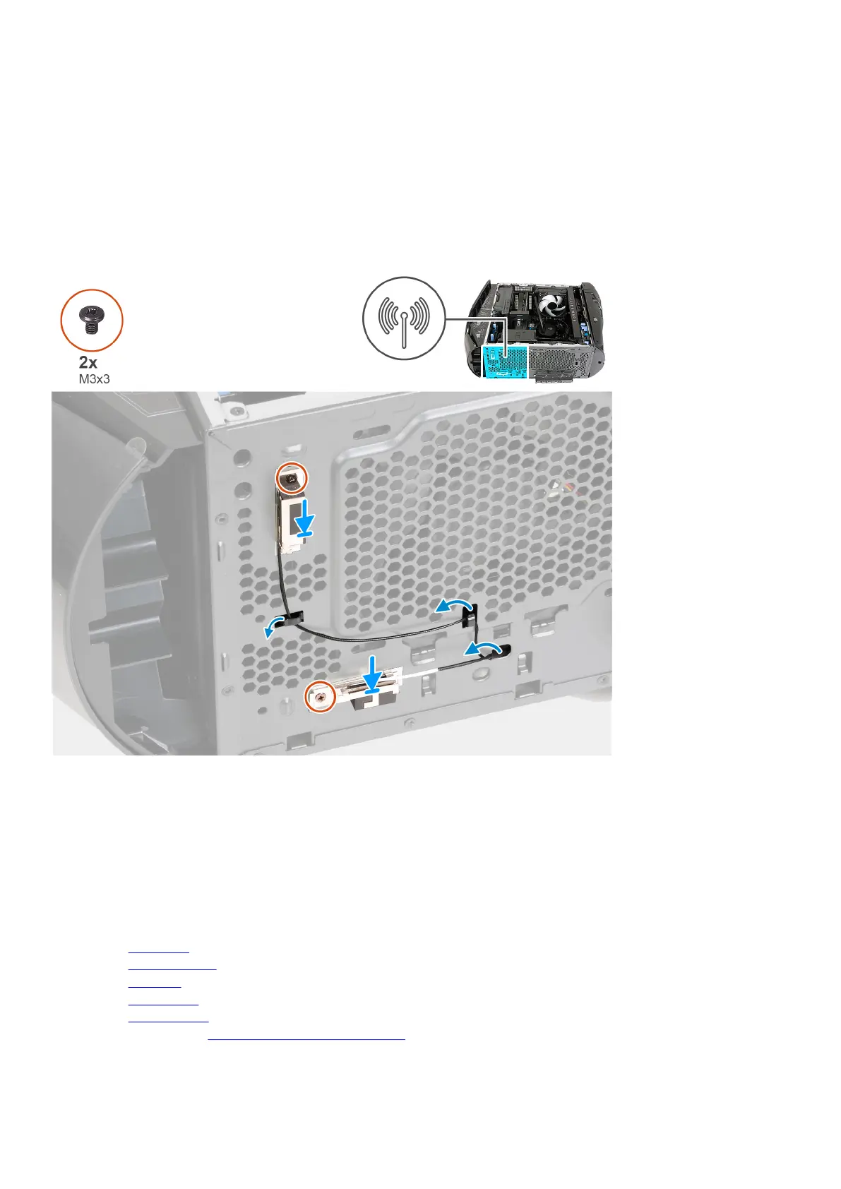 2. Align the screw holes and replace the two screws (M3x3) that secures the antennas to the chassis.