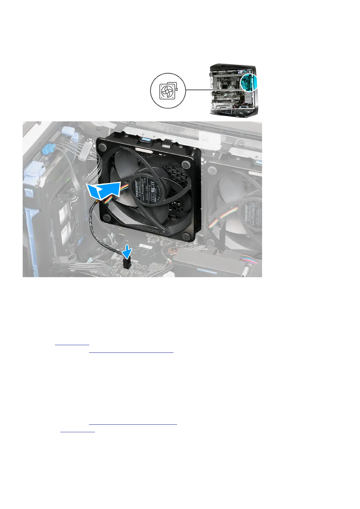 The following images indicate the location of the PCIe fan and provide a visual representation of the removal procedure.