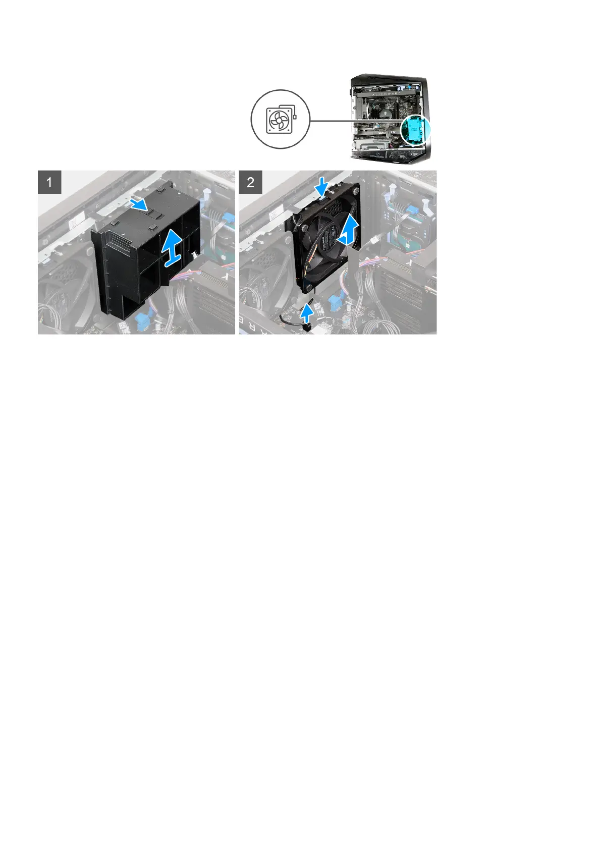 The following images indicate the location of the PCIe fan and provide a visual representation of the installation procedure.