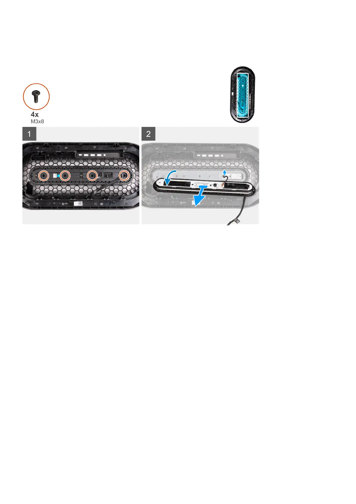 2. Remove the four screws (M3x8) that secure the AlienFX LED board to the front bezel.