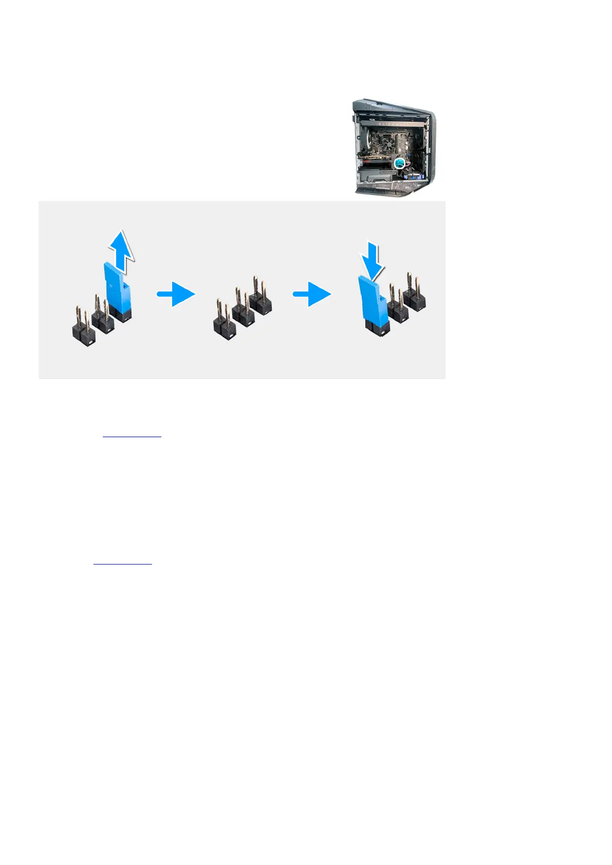 The following images indicate the location of the password reset jumper on the system board and provide a visual representation of