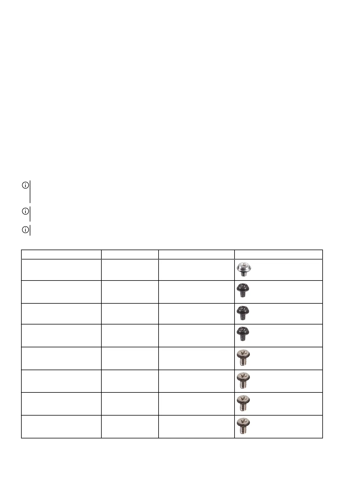 NOTE: When removing screws from a component, it is recommended to note the screw type, the quantity of screws, and then
