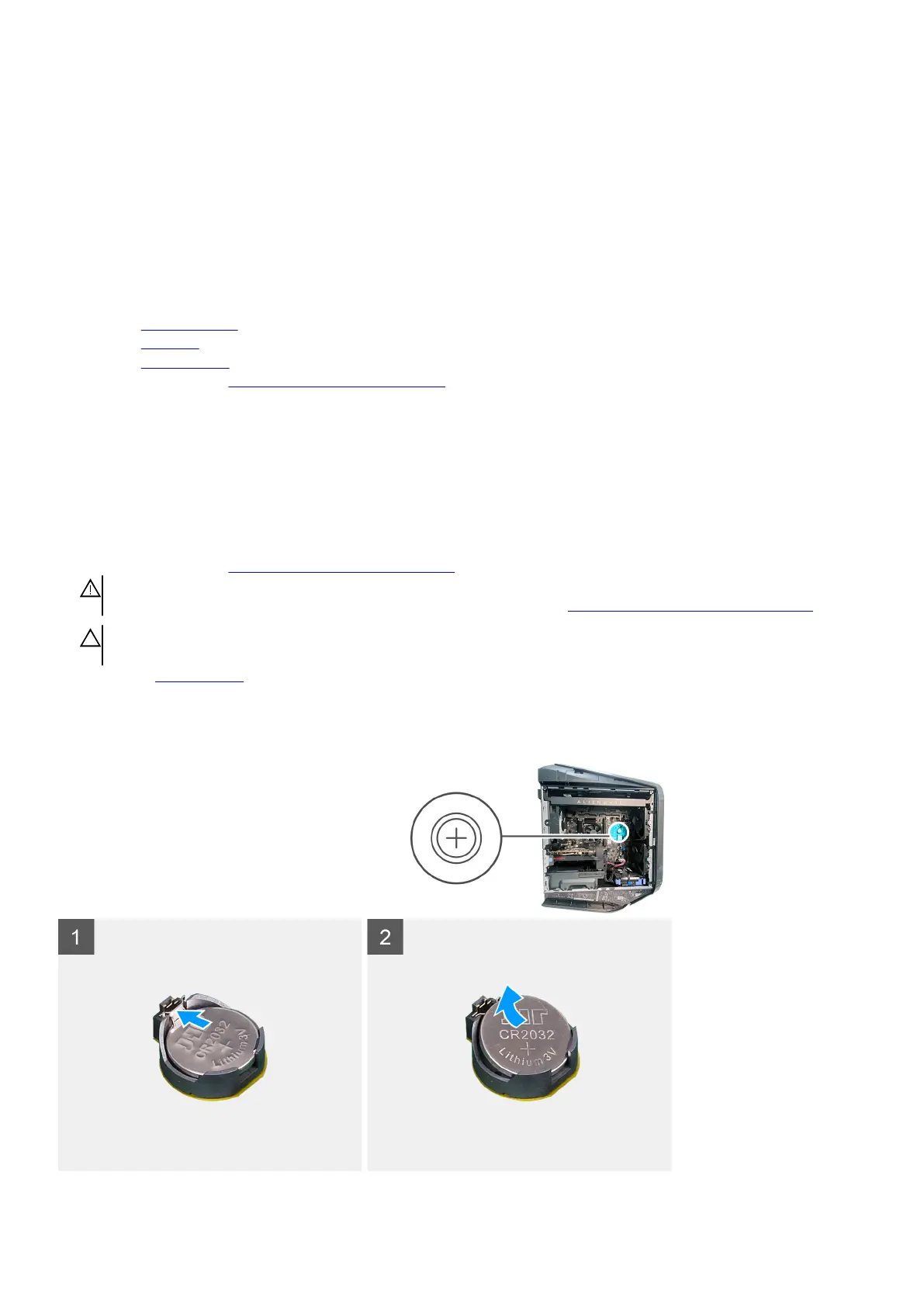 The following images indicate the location of the coin-cell battery and provide a visual representation of the removal procedure.
