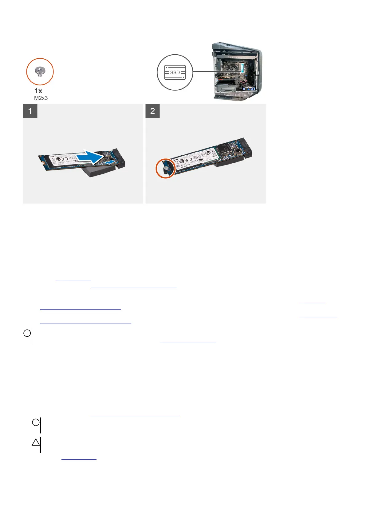 3. Press the other end of the 2280 solid-state drive down and replace the screw (M2x3) that secures the 2280 solid-state drive to