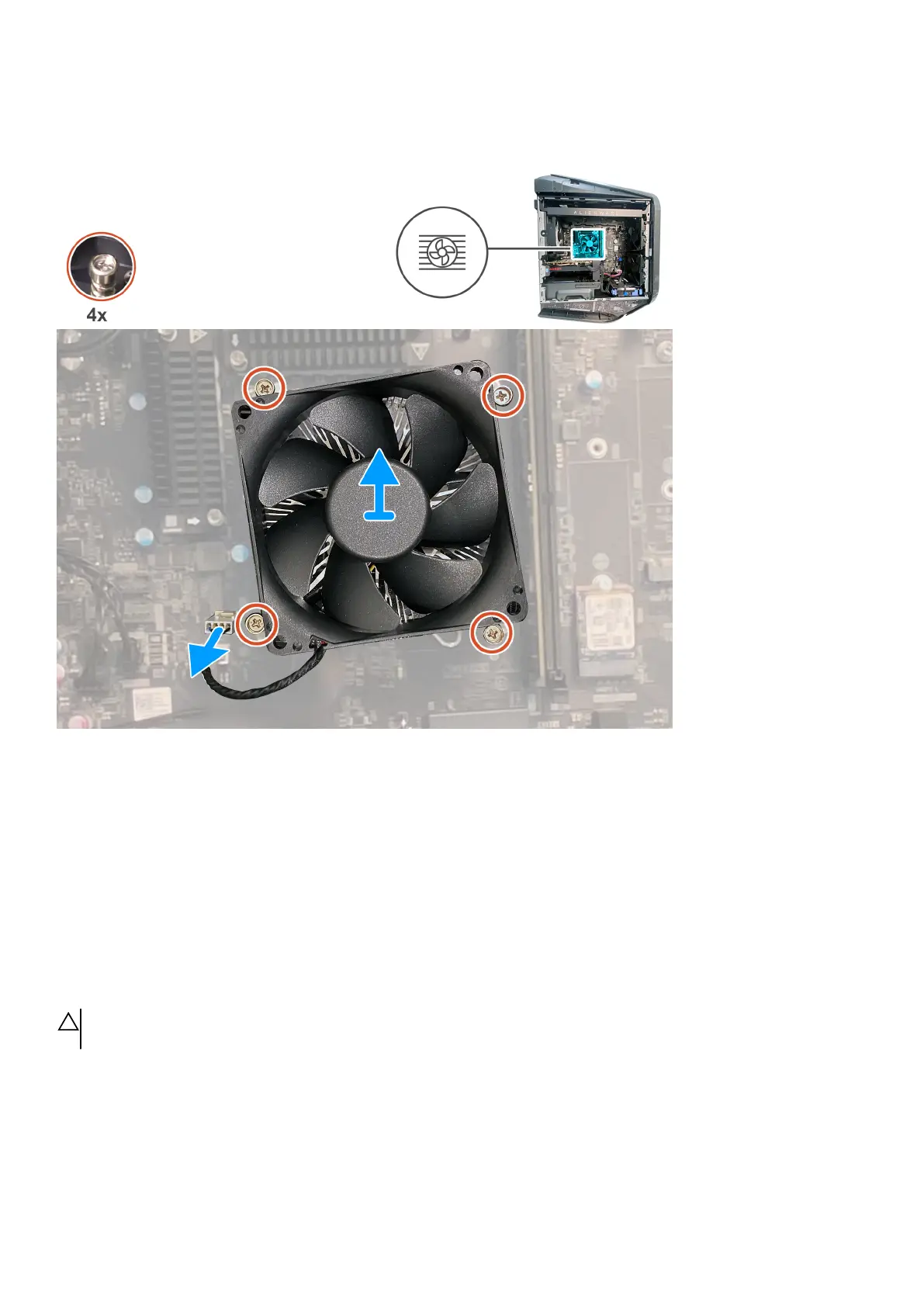 3. In the reverse sequential order, loosen the four captive screws that secure the processor fan and heat-sink assembly to the system