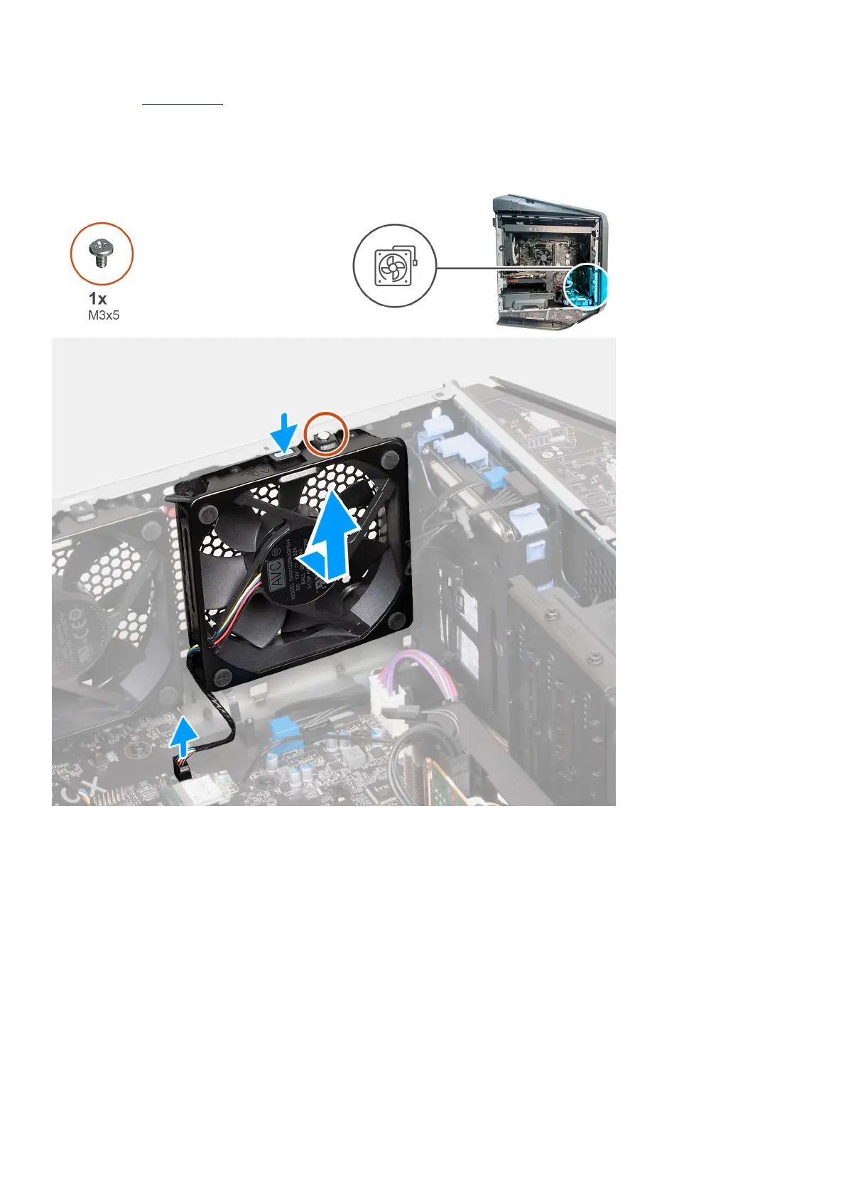 3. Remove the screw (M3x5) that secures the lower front-chassis fan to the chassis.