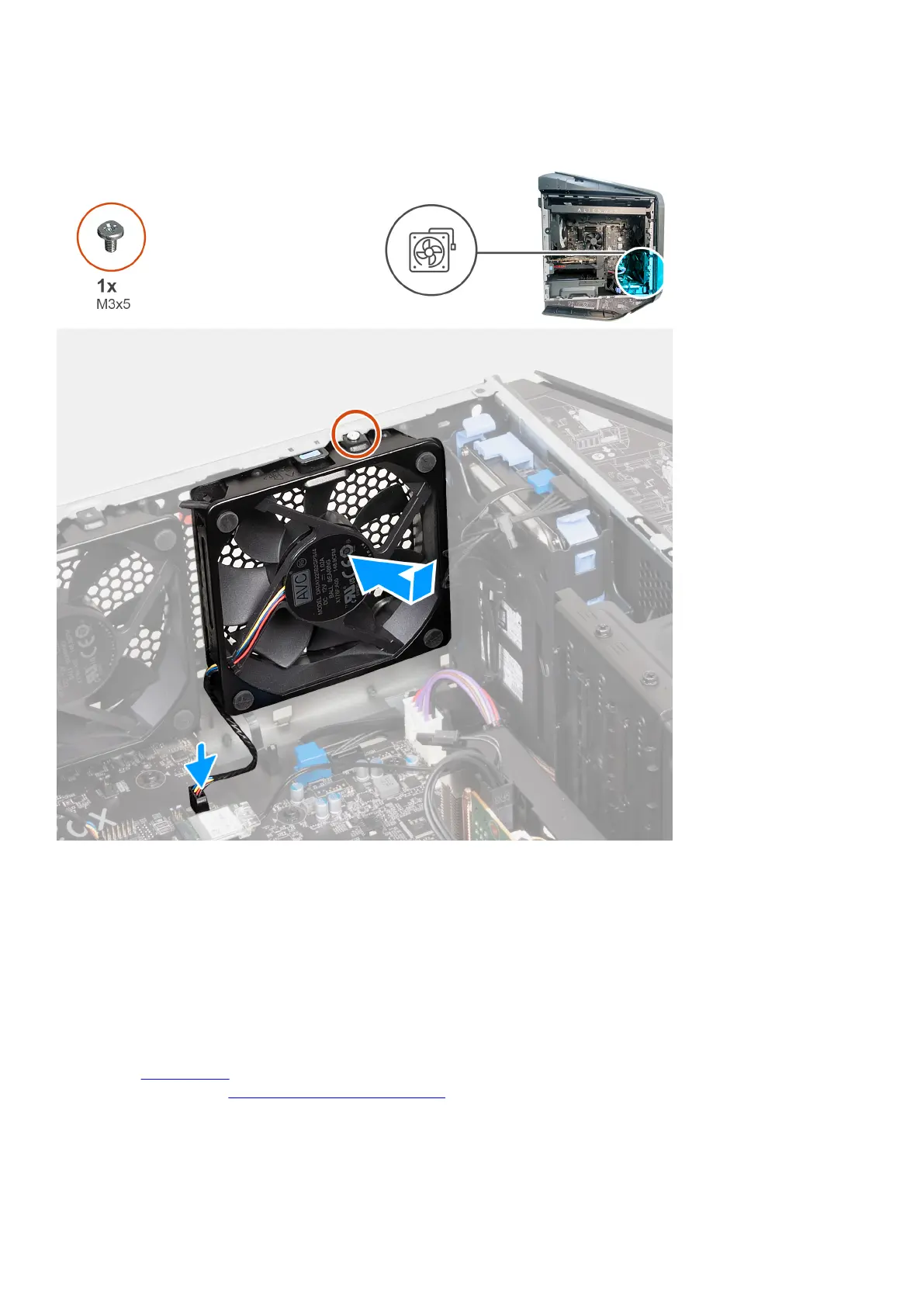 4. Replace the screw (M3x5) that secures the lower front-chassis fan to the chassis.