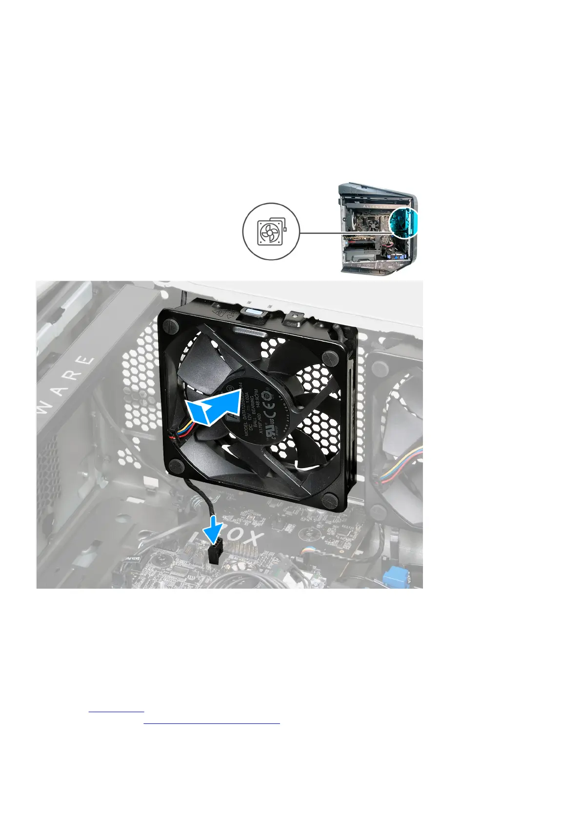 The following images indicate the location of the upper front-chassis fan and provide a visual representation of the installation