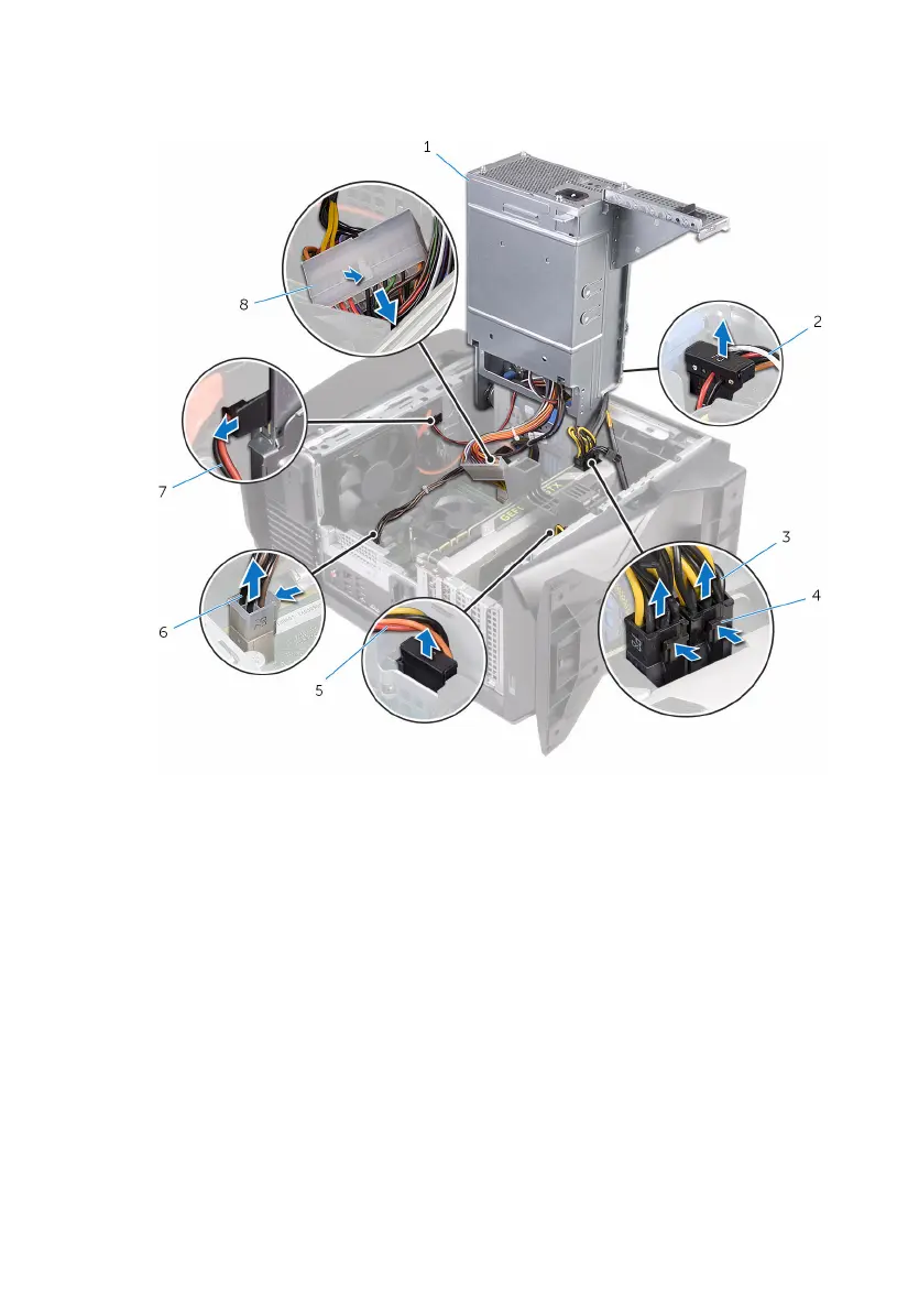 8 Rotate the power-supply unit towards the chassis until the unit snaps into