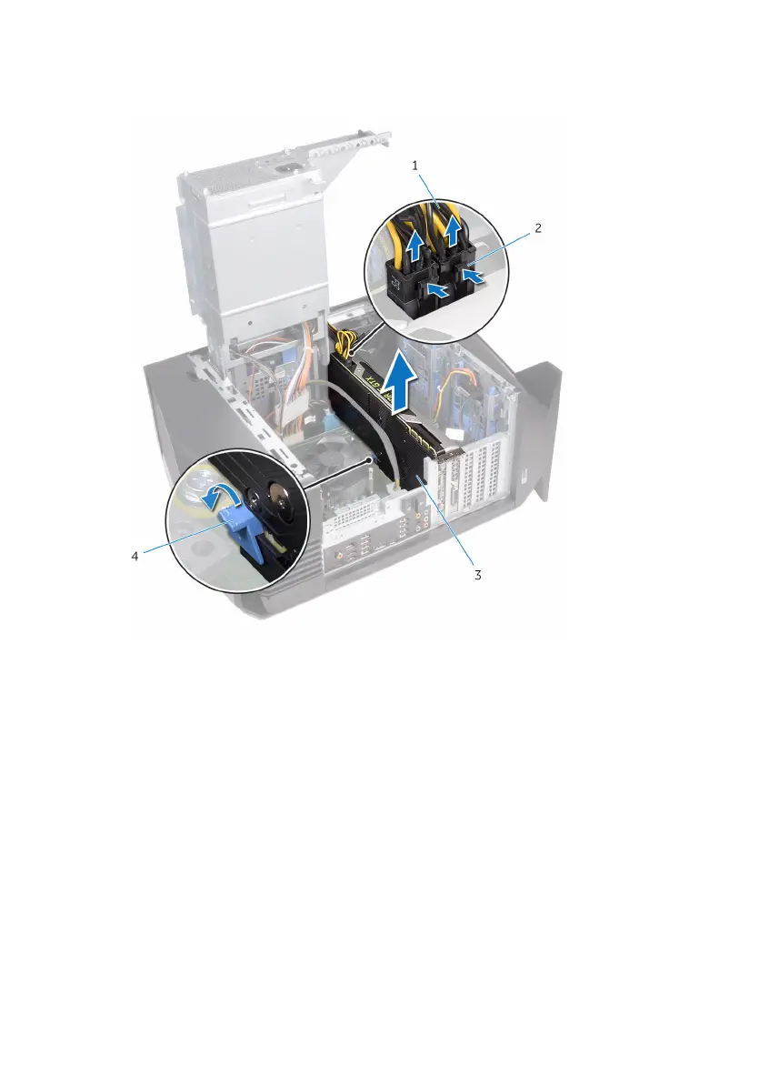 3 Push the securing tab on the PCIe slot away from the graphics card, grasp