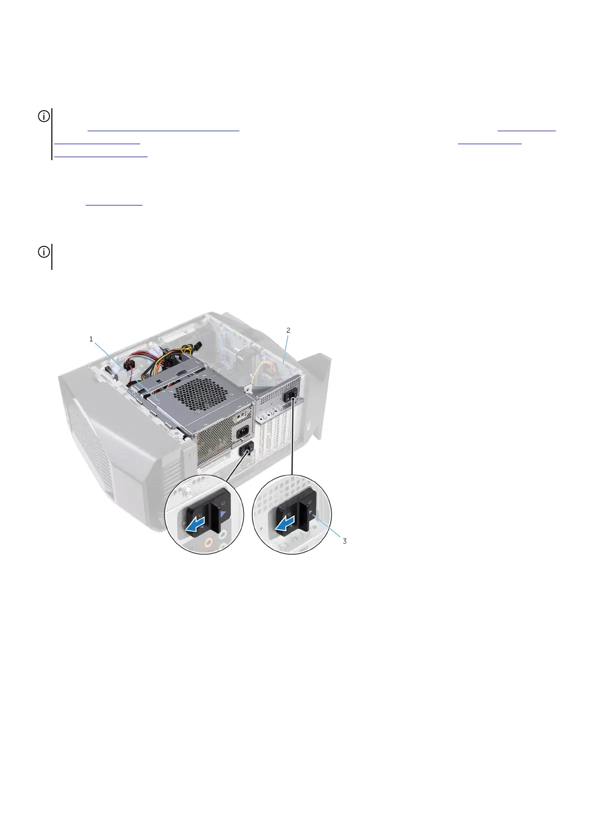 3. Lift the power-supply unit cage while pressing and holding the graphics-card bracket.