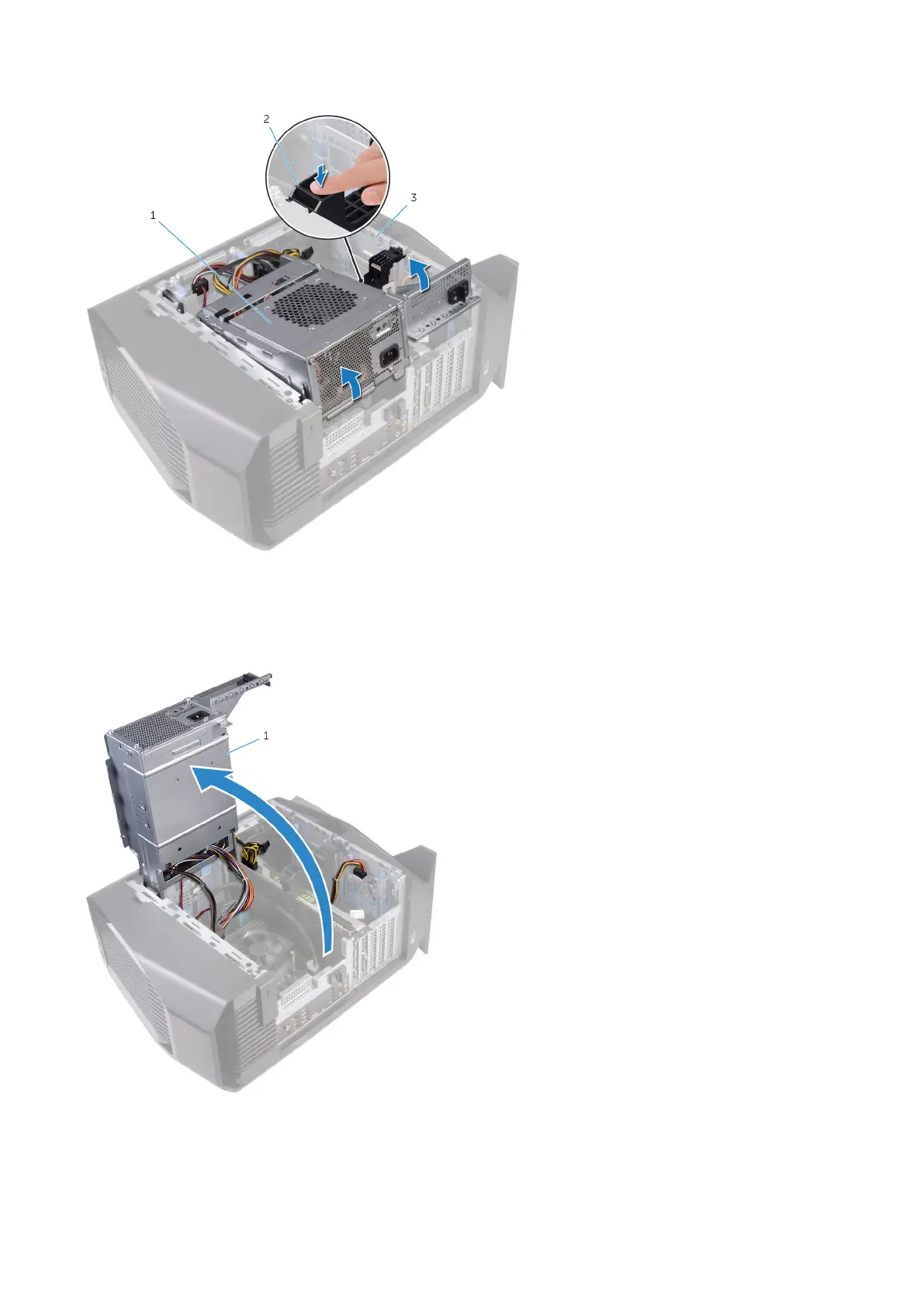 5. Press the releasing clip on the power-cable connectors and disconnect the power cables from the graphics card.