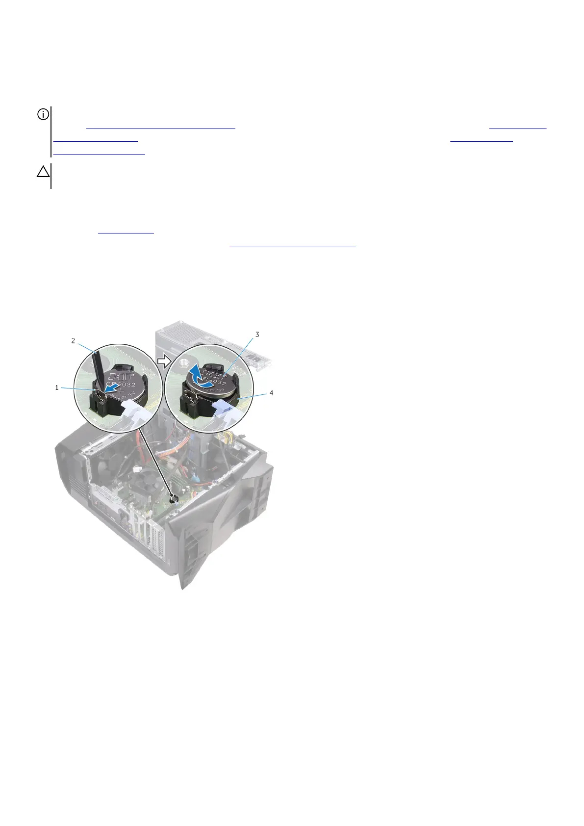 CAUTION: Removing the coin-cell battery resets the BIOS setup program’s settings to default. It is recommended that you