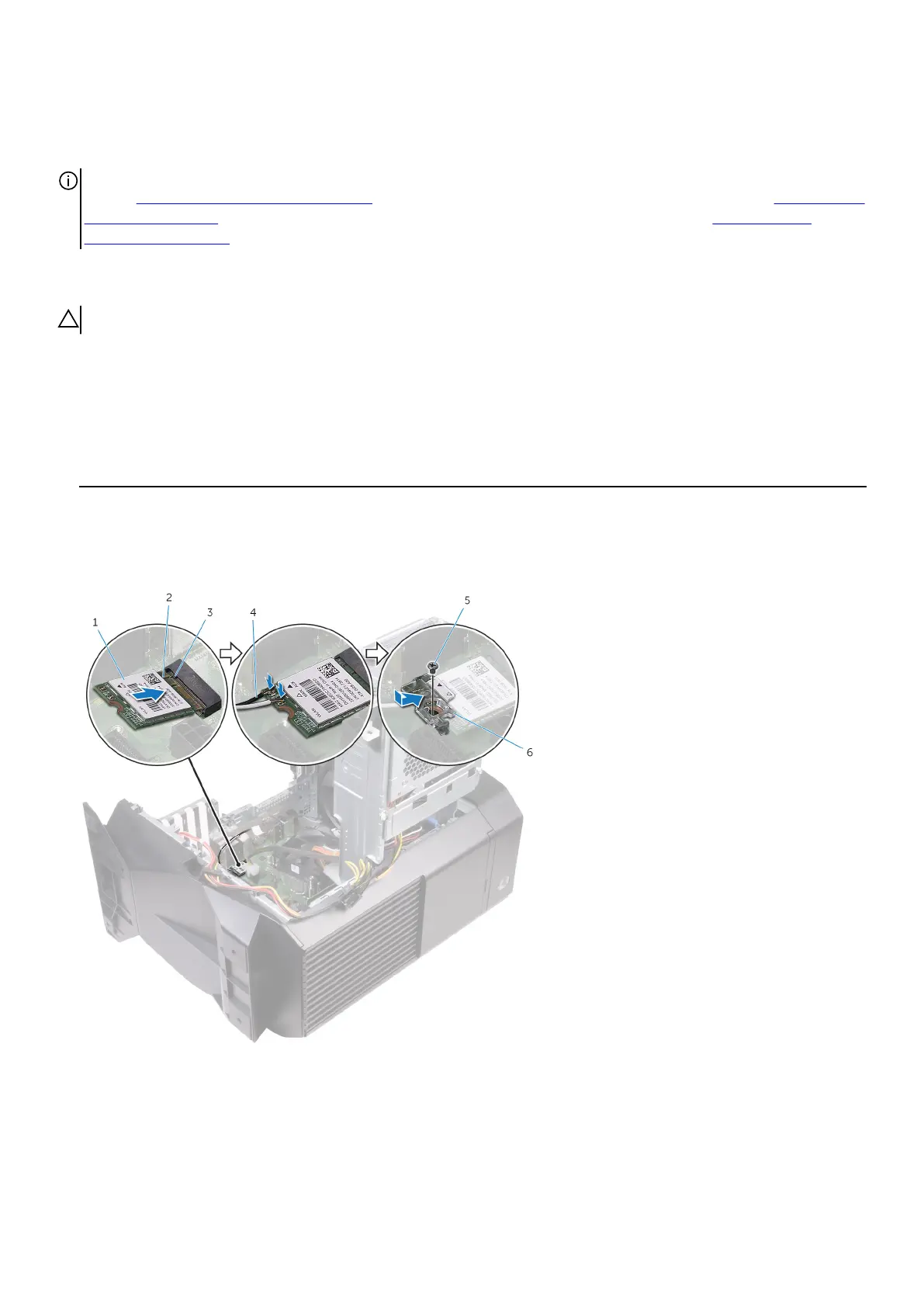 CAUTION: To avoid damaging the wireless card, do not place any cables under it.