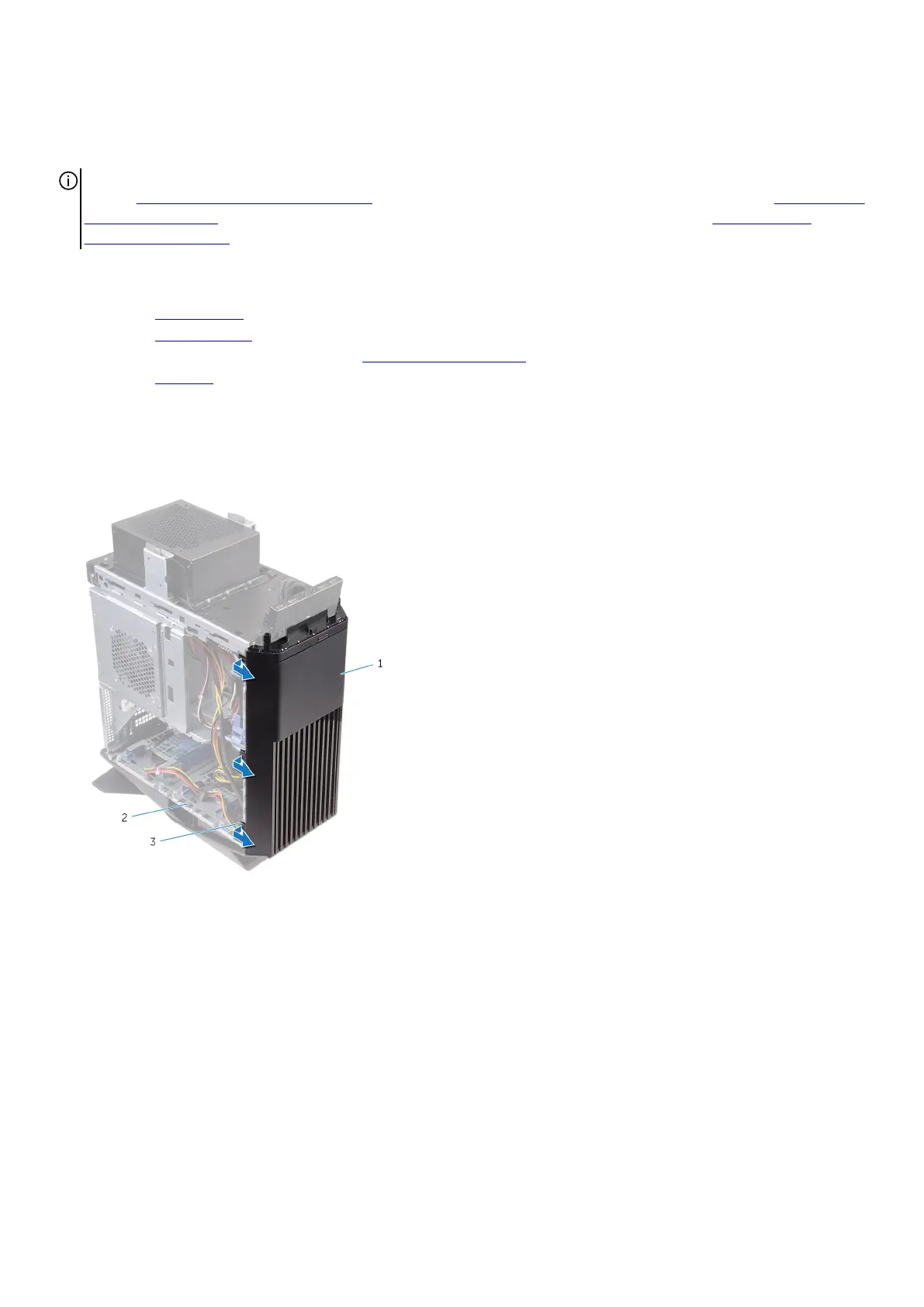 2. Grasp and release the front bezel tabs sequentially from the top, by moving them outward from the front panel.