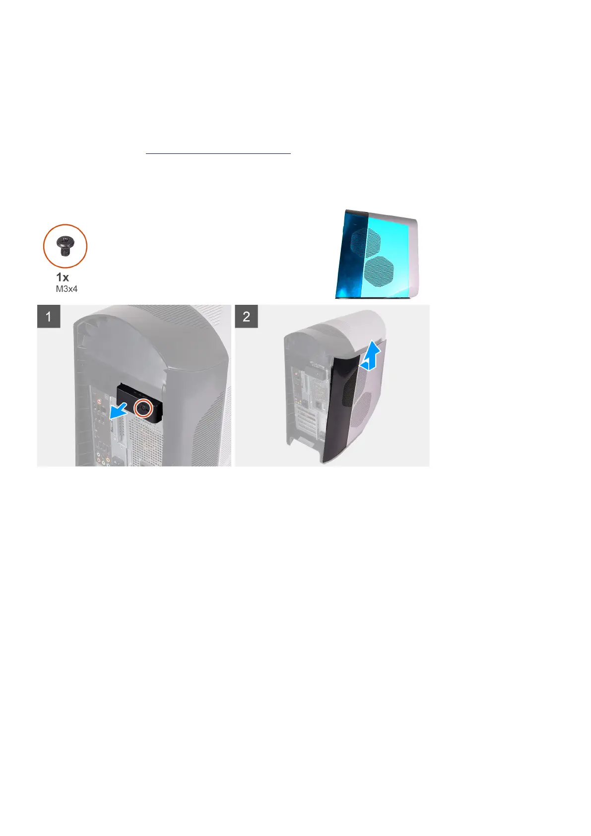 1. Remove the screw (M3x4) that secures the side-cover release latch to the chassis.