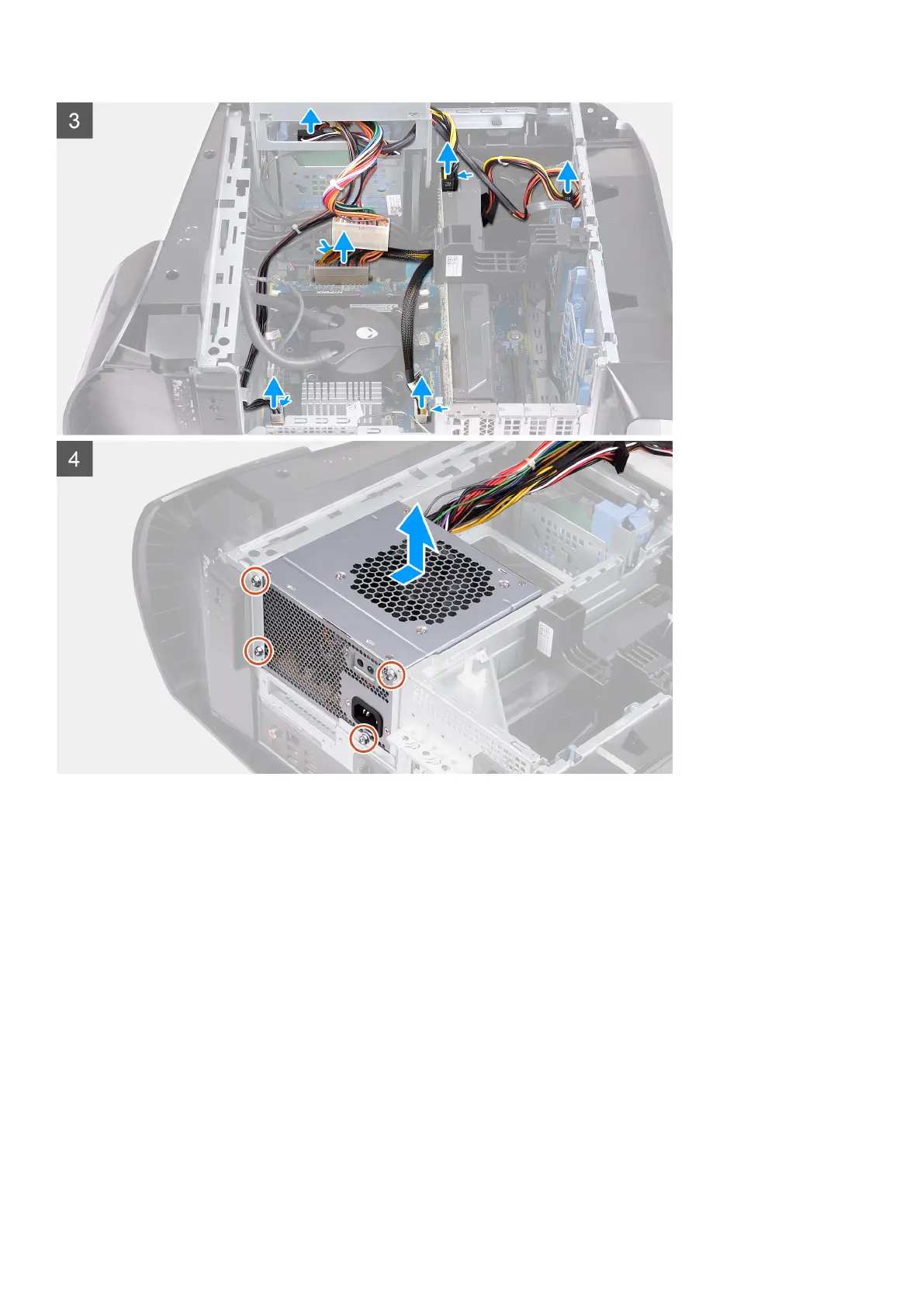9. Slide and lift the power-supply unit, along with the cables, off the chassis.
