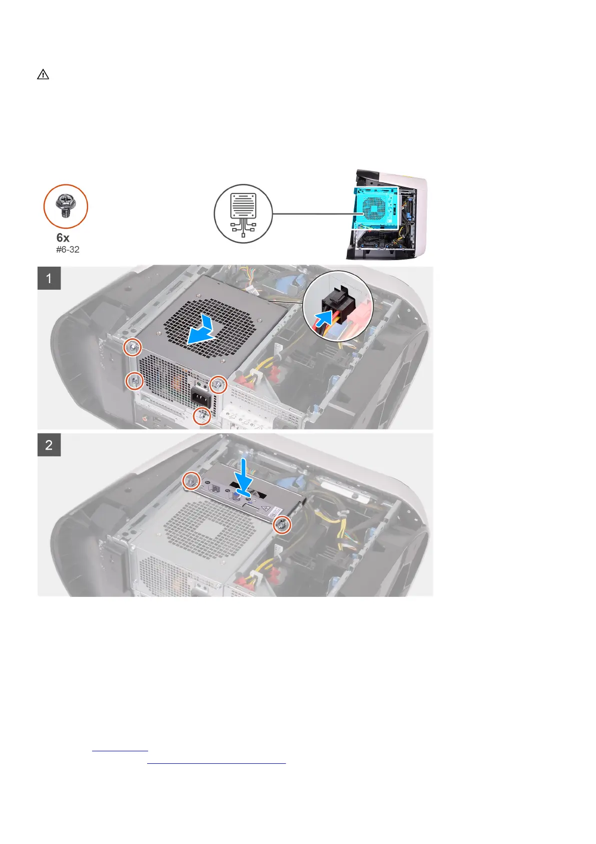 The following images indicate the location of the power-supply unit and provides a visual representation of the installation