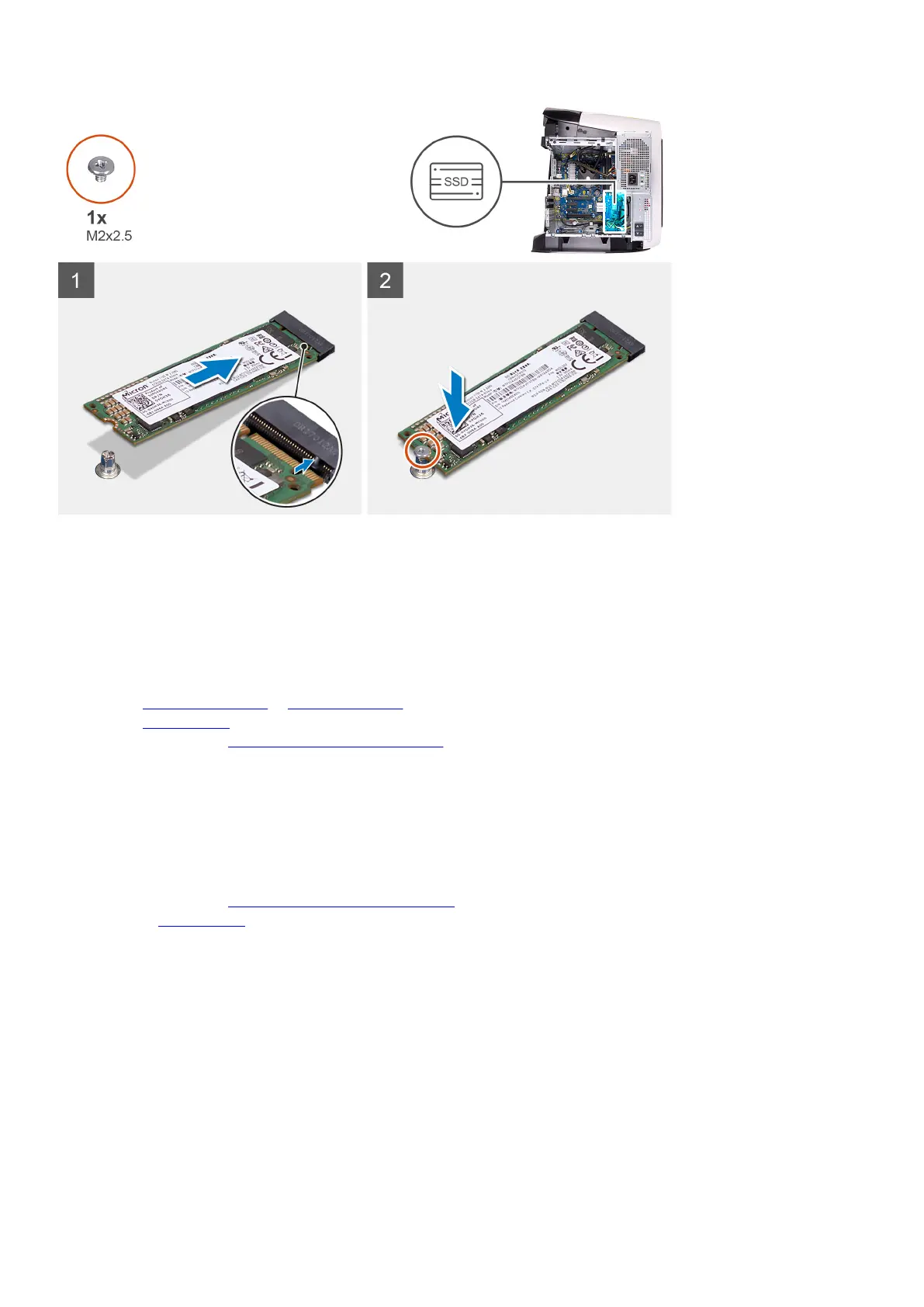 3. Press the other end of the solid-state drive down and replace the screw (M2x2.5) that secure the solid-state drive to the system