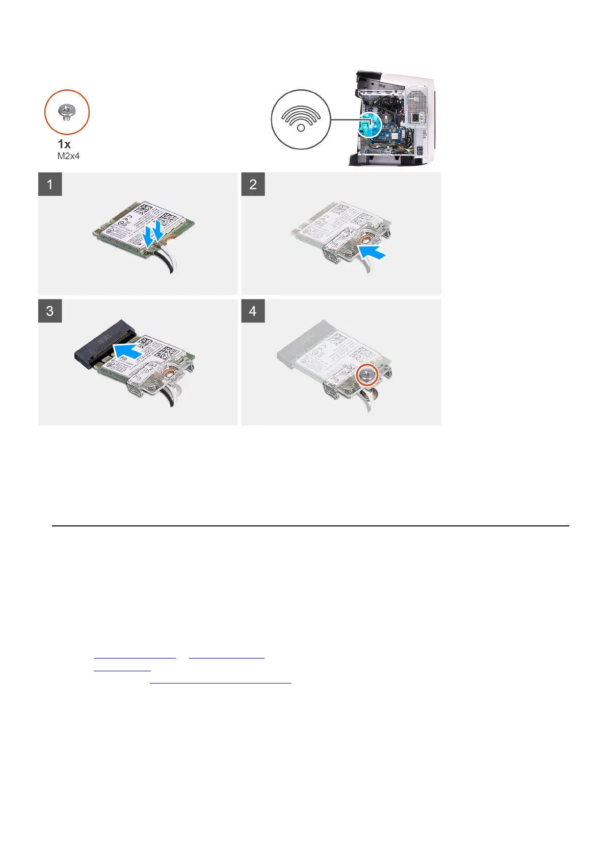 5. Replace the screw (M2x4) that secures the wireless card to the system board.
